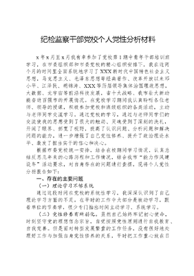纪检监察干部党校个人党性分析材料x年x月至x月我有幸参加了党校第1期中青年干部培训班学习,在市委组织部和市委党校的精心组织安排下,我在近两个月的时间里全面系统地学习了XXX新时代中国特色社会主义思想,马克思主义、毛泽东思想等经典著作、改革开放以来邓小平、江泽民、胡锦涛、XXX等历届领导集体治国理政思想,大数据、元宇宙等前沿科技发展,省十大战略、我市壮大新动能奋进百强市的开展情况。在党校学习期间我认真聆听各位老师、领导的授课,积极参加党校和班级组织的各类活动,主动与老师同学交流学习。通过党校的学习,通过与老师同学们的交流使我的思想受到了很大的触动、灵魂受到了深刻的洗礼,开阔了眼界、拓宽了视野,提高了认识问题、分析问题和解决问题的能力,进一步增强了自己党性修养、提升了政治理论水平、激发了担当实干的信心和决心。根据市委党校统一安排,结合在校期间学习情况,认真总结反思几年来的心路历程和工作情况,结合我市能力作风建设年活动要求,对自身存在的问题进行查摆,现将个人党性分析报告如下:一、存在的主要问题(一)理论学习不够系统通过这段时间在党校的系统性学习,我深深认识到了自己理论学习方面的不足。在平时的工作中大部分是被动学习,跟着单位的节奏学,很少专门抽出时间主动学习、系统学习。(二)党性修养有所弱化。虽然自己始终牢记初心使命,时刻坚守党的理想信念宗旨,自觉按照党性原则进行自我教育、自我完善。但是面对转型发展繁重的工作任务,没有很好地处理好工作与加强自身党性修养的关系,平时把工作重心放在日常事务上,对党支部、基层党小组开展党建工作参与不够,履行一岗双责不够到位,主要是自己在思想上放松了戒备,没有做到自我净化、自我完善、自我革新和自我提高,根本原因还是自身党性修养和党性锻炼有待进一步提高。(三)宗旨意识不够牢固。日常工作中经常会接触到一些损害群众利益的不正之风的问题,对于发现的问题线索,主要精力放在了严肃查处有关责任人的违纪违法案件上面,反而此类问题所引发的群众诉求有所忽略,总认为那是有关部门的业务工作,很少跟踪问效,监督的后半篇文章做得不够,归根到底是宗旨意识不够,为民服务的意识有所欠缺。(四)担当作为还有差距。工作中虽能兢兢业业、履职尽责,较好地完成各项工作任务,但自己在主动加强知识储备、开拓工作视野、提高业务能力,创新工作方式方法上还有较大差距,在担当作为上与群众期待、领导要求、先进典型之间还有较大差距。二、产生问题的原因分析(一)理论学习方面理论功底不扎实,世界观、人生观、价值观树立得还不够牢固。世界观、人生观、价值观,是决定一个人的人生追求、一个人的发展道路、一个人的工作态度的根本性问题,是能否筑牢抵御腐蚀的思想道德防线、增强廉洁自律的自觉性和拒腐防变的免疫力的根本性问题。自己虽然不断加强理论知识的学习,但是由于日常工作忙,集中学习的时间少,学习还是存在不深、不透、不全面、不系统的现象,在把握三个代表重要思想和科学发展观上还不够,个性是在处理好个人利益与群众利益、国家利益的关系方面有待提高。自己在政治理论方面知识储备不能很好的适应目前的工作需要,面对百年未有之大变局,面对国内国际两个大局,形势瞬息万变,不学习将会被时代抛弃。在新的历史发展时期,面对新矛盾、新问题、新形势、新经验层出不穷的状况,需要学习或更新的东西很多,共产党人文可居文库——海量学习资料,手机电脑均可下载www.wenkeju.com更要注重学习,树立终生学习的理念。(二)党性修养方面。党性锻炼、党性修养是党校学习的一项重要任务。在党性锻炼方面,党校为我们作了精心安排。每个小组开展了丰富多彩、行之有效的党性锻炼活动,通过听讲座、现场教学和研讨,我对党性修养的基本要求和重点有了比较全面的了解。纵观自己入党以来,在党性修养方面做的还很不够,有时往往人云亦云,不知所以,没有养成适合自己党性修养的良好习惯,放松了自己作为一名党员的要求,把自己混同于一般的群众,积极主动参加党组织各项活动不够积极,没有有意识的从日常党组织生活中提升自己的党性修养,党性锻炼,对党的理想信念不够坚定,向革命先辈学习不够、向身边先进典型学习不够,离一名优秀的共产党员标准还有差距。(三)宗旨意识方面。工作中很少从人民群众的角度出发去看问题,进而导致主动开展监督检查工作质量不高,发现的问题线索相对较少,被动接受问题线索较多。主动化解矛盾少,被动解决矛盾多,忙于日常事务到基层调研检查不够,工作有时只求过得去、不求过得硬,甚至放低标准,有时由于时间紧任务重,检查工作流于形式,走马观花、蜻蜓点水,深入了解基层不够,基层问题掌握不全面。虽然自己在工作中坚持把全心全意为人民服务作为根本的出发点和落脚点,但是应对不断涌现出的新的社会问题,应对不断变化的新的社会阶层,自己研究分析得不够深入、不够透彻,没