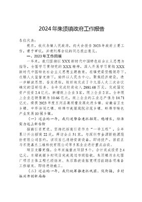 2024年朱顶镇政府工作报告各位代表:现在,我代表镇人民政府,向大会报告2023年政府主要工作,请予审议,并请列席会议的同志提出意见。一、2023年工作回顾一年来,我们坚持以XXX新时代中国特色社会主义思想为指导,全面学习贯彻党的XXX精神,深入开展学习贯彻XXX新时代中国特色社会主义思想主题教育,在镇党委坚强领导下,在镇人大监督支持下,始终以人民为中心,聚焦经济建设,进一步解放思想、奋发进取,较好地完成了十九届人大三次会议确定的目标任务。全年完成财政收入2881.68万元,完成固定资产投资2.4亿元。新增规上企业3家,限上企业2家,全年限上企业总销售额为10.66亿元,规上企业的工业总产值为14.71亿元。荣获2023年度五河县高质量发展先进乡镇、安徽省卫生乡镇、中华诗词之镇、蚌埠市美丽庭院示范乡镇、蚌埠市特色产业发展10强乡镇。(一)过去的一年,我们逆势奋进抓招商、稳增长,经济实力迈上新台阶招商引资更优。坚持把招商引资作为一号工程,全年累计外出招商22次,拜访企业51家,与深圳市金源新能源股份有限公司签约,该项目已进场安装设备,即将投产。目前正与东莞嘉兰三维科技有限公司等5家企业进行重点洽谈。项目支撑更强。全年实施重点项目5个,合计完成投资2.4亿元。东堌美丽乡村项目完美通过市级验收,朱顶镇污水处理厂项目主体工程已经结束、朱石路改造拓宽项目前期各项准备工作结束,即将进场施工。(二)过去的一年,我们统筹推进抓巩固、促衔接,乡村振兴开创新局面脱贫成果更加巩固。全镇2023年新增监测对象18户71人,消除风险监测对象74户262人,消除风险比例达60.16%。切实抓好产业帮扶提档升级,纵深推进实施特色种养业项目。2023年全年发展到户项目237个,发放奖补资金69.16万元。大力推进稳岗就业。持续强化保就业政策宣传,实现脱贫人口和监测对象人口1377人转移就业,其中2023年新增就业人口177人。深入开发扶贫小额信贷政策,2023年共有脱贫户和监测对象户197户实施小额信贷,放贷973.5万元。顺利通过安徽省2023年度巩固拓展脱贫攻坚成果同乡村振兴有效衔接实地核查评估。农业发展更加强劲。守牢粮食安全底线,实施高标准农田项目4.2万亩,涉及河口等10个行政村。投入资金9900万元,建成河口片区智慧农业4200亩等亮点工程。发挥省级现代农业产业园带动效应,紧扣市场需求,因地制宜,大力发展特色产业,采取合作社+农户+市场的模式,多渠道助农增收,培育玉米饲料加工产业。集体经济发展更加多元。积极探索五型发展模式,全面梳理和摸清闲置资源资产,充分挖掘发展潜力,在小柳村新庄小学投资建成5600平方的厂房并顺利发包,为村集体经济增收36万元/年。石巷村以集体经济股份合作社为依托,整合本村农产品资源,拓宽销售渠道,增加村集体经济收入11.15万元,全镇村级集体经济经营性收入676.75万元,村均37.6万元,其中50万元以上强村6个。(三)过去的一年,我们精雕细琢抓品质、展气质,乡村面貌展现新颜值抓镇域环境外在美。先后拨付各村工作经费280余万元,保障环境整治机械及人工费用;投入30余万元,配备保洁三轮车和吸粪车;投入100余万元,绘制墙画,引导群众主动参与人居环境整治;和美乡村投入资金500余万元,建成东堌村省级美丽乡村,顺利通过市级验收。突出典型示范带动,高标准完成卫生改厕307户。做好大气污染防治工作。高度重视文可居文库——海量学习资料,手机电脑均可下载www.wenkeju.com秸秆禁烧及综合利用工作,顺利实现零火点,开展水污染防治和生态环境保护督察整改。提广大群众精气神。组建民间文艺表演团体48支,开展各类演出100余场,先后举办迎新春文艺演出、征联评选、庆七一唱红歌演出、村BA篮球比赛等活动,获得五河清明庙会民俗演出活动最佳组织奖、龙舟赛三等奖。举办小柳、西堌、河口村晚不断满足人民群众精神文化需要。(四)过去的一年,我们倾情投入抓普惠、强保障,民计民生增添新福祉落实惠农补贴政策。城乡居民养老保险参保15478人。发放最低生活保障金1110.4万元、发放农村五保户补助资金278.1万元,扎实开展低保特困年度复核工作,全镇共核查1048户低保户,及时清退36户97人,新增33户115人。春季发放小麦赤霉病防治药剂87万元,补贴农机具96台套,补贴资金178.5元,发放到户农业支持保护补贴资金684万元,一次性种粮补贴48万元。开展暖民心行动。投入资金14.86万元改造朱顶镇农贸市场,开展家政培训,建成老年助餐点2个,开办19所老年学校。道路交通更加便捷。利用公益事业财政奖补资金127.5万元修建水泥道路3135米、铺设沥青道路1400米、下水道260米。争取专项债券资金180余万元,实施珩庄