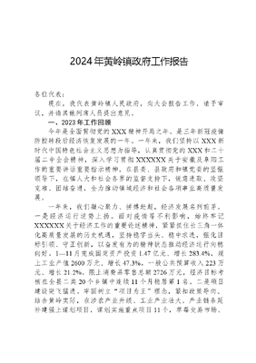 2024年黄岭镇政府工作报告各位代表:现在,我代表黄岭镇人民政府,向大会报告工作,请予审议,并请其他列席人员提出意见。一、2023年工作回顾今年是全面贯彻党的XXX精神开局之年,是三年新冠疫情防控转段后经济恢复发展的一年。一年来,我们坚持以XXX新时代中国特色社会主义思想为指导,认真贯彻党的XXX和二十届二中全会精神,深入学习贯彻XXXXXX关于安徽及阜阳工作的重要讲话重要指示精神,在县委、县政府和镇党委的坚强领导下,在镇人大和社会各界的监督支持下,锐意进取、攻坚克难、团结奋进,全力推动镇域经济和社会各项事业高质量发展。一年来,我们凝心聚力、拼搏赶超,经济发展名列前茅。一是经济运行逆势上扬。面对疫情等不利影响,始终牢记XXXXXX关于经济工作的重要论述精神,紧紧抓住长三角一体化高质量发展的历史机遇,坚持稳字当头、稳中求进,强化目标引领、守正创新,以奋发有为的精神状态推动经济运行向稳向好。1—11月完成固定资产投资1.47亿元、增长283.4%,规上工业产值2600万元、增长47.3%,一般公共预算收入223万元、增长21.2%,限上消费品零售总额2726万元,经济目标考核在全县二类20个乡镇中连续11个月稳居第1名。二是项目建设突飞猛进。牢固树立项目为王理念,紧扣政策导向、结合黄岭实际,在涉农产业升级、工业产业壮大、产业链条延补建强上谋划项目,谋划实施重点项目11个,草莓交易市场、田韩路改造主体完工,流鞍河地表水厂拔地而起,三峡风电、天然气管道等完成前期工作,招商引资洽谈落地姜子牙白酒、齐庄光伏等项目4个,为增强发展后劲提供强劲引擎。三是营商环境持续优化。全面落实一改两为工作要求,落实3+N全程帮办代办机制,进一步简化优化办事流程,切实提高服务效能,新登记市场主体567户。修改完善联系包保走访企业机制,12名党政班子成员包联企业17家累计走访企业125次,新培育规上工业企业1家。三得利养殖厂、徽润纸箱包装公司、富信建设公司等24个问题得到有效解决,诉求办结率100%、企业满意率100%。保质保量完成第五次经济普查清查阶段工作,摸底545户单位、3533户个体户。一年来,我们补齐短板、夯实基础,乡村振兴成色更足。一是巩固拓展脱贫成果。自觉扛起政治责任,确保三类户不发生返贫致贫,开展特色种植技术培训785人,产业奖补346户、45.1万元,省外务工交通补贴2241人、112万元,实施签约医生服务43686人、办理慢性病签约7754人,医疗救助39户、补助216万元,开发公益岗位320个、工资153.6万元,实施雨露计划628人次、补助94.2万元。成立村级防返贫监测网格员队伍,核查研判上级反馈预警信息539条,开展2轮全员集中排查、纳入监测对象21户73人。二是发展基础持续夯实。主动对接沟通,积极申请资金,大力推进道路、水利等基础设施建设,全面提升基本公共服务配套水平,修建机耕路4.2㎞,新修乡村道路10.6㎞,修建桥梁4座,完成大刘、八里坡等乡村建设、新增游园广场6个,实施户厕改造282户、危房改造9户,改造农村电网5.2㎞、新增变压器7台、受益群众近2万人。三是特色产业蓬勃发展。大力发展高质高效农业,深入推进一村一品、一镇一业建设,草莓规模种植355户、大棚4114个、面积约8600亩、产值超过3亿元、带动就业约8000文可居文库——海量学习资料,手机电脑均可下载www.wenkeju.com人,促进农民持续稳定增收。大力发展畜禽养殖业,新增养猪场1家,申报规模养牛4家。发挥何洼、前洼、后集村级合作社作用,加快土地流转,新增流转面积超过3000亩,新成立家庭农场、合作社等45家。坚决扛稳粮食安全责任,完善田长制,做好宅基地、设施农用地审批管理、农村不动产登记确权颁证等工作,依法打击土地违法行为5起,新增补充耕地约200亩。四是环境治理初见成效。持续推进农村人居环境整治,因地制宜开展五小园建设,完善日常管护机制,打造基本版自然村67个,治理河道6公里。常态化推进散乱污企业、非法处置危化品和固体废物排查治理,高标准完成2处黑臭水体整治工作,整改5处突出生态环境问题,及时解决影响群众生产、生活的环境投诉问题9个。高质量完成秸秆禁烧工作,秸秆综合利用率超过98%。常态化推进河长制林长制,流鞍河断面水质考核优秀,巡河率、巡林率均达到100%。一年来,我们情牵百姓、心系民生,社会事业交出暖心答卷。一是社会保障注重利民。全面落实民政救助、养老保险等惠民政策,发挥社工站作用,关心关爱农村留守儿童,及时动态调整低保、五保,发放残疾人补贴1873人次,组织2批次残疾人技能培训,扶持残疾人就业创业8人。认真落实各项惠农资金发放,惠及14243人。二是教育卫生注重便民。加大村医培养培训力度,改善