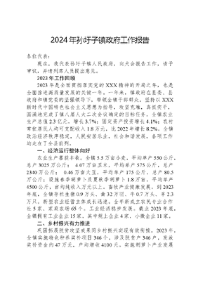 2024年孙圩子镇政府工作报告各位代表:现在,我代表孙圩子镇人民政府,向大会报告工作,请予审议,并请列席人员提出意见。2023年工作回顾2023年是全面贯彻落实党的XXX精神的开局之年,也是全面推进高质量发展的关键一年。一年来,镇政府在县委、县政府和镇党委的坚强领导下,带领全镇干部群众,坚持以XXX新时代中国特色社会主义思想为指导,攻坚克难,真抓实干,圆满地完成了镇八届人大二次会议确定的目标任务。全镇农业生产总值2.3亿元,增长3.7%;固定资产投资增长4.1%;农村常住居民人均可支配收入1.8万元,比2022年增长8.2%。全镇政治经济秩序稳定,人民安居乐业,社会和谐发展,各项工作均走在了全县前列。一、经济运行整体向好农业生产喜获丰收。全镇5.5万亩小麦,平均单产550公斤,总产3025万公斤; 4.07万亩玉米,平均单产575公斤,总产2340万公斤; 0.46万亩大豆,平均单产175公斤,总产80.5万公斤;设施春季胡萝卜及夏秋季胡萝卜1.8万亩,平均单产4500公斤,亩均纯收入万元以上。畜牧产业健康发展。到2023年底,全镇存栏生猪0.9万头、禽32万羽、牛0.7万头、羊2.3万只。新型农业经营主体成长迅速。全年新成立农民专业合作社5家、家庭农场65个。工业经济稳步发展。截止2023年底,全镇拥有工业企业15家,其中规上企业4家,小微企业11家。二、乡村振兴有力推进巩固拓展脱贫攻坚成果同乡村振兴实现有效衔接。2023年,全镇实施特色种养奖补项目346个,涉及脱贫户346户,发放奖补资金约47万元,户均增收4100元。实施胡萝卜产业发展项目——程山冷库及配套设施建设项目1个,投资1330万元,建成容量2100吨冷库1座。项目的建成促进了春季设施胡萝卜产业的发展,全镇新增入设施胡萝卜种植面积3000亩,为程蒋山村、港河村、马庄村、周圩村增加收入60万元,安置脱贫人口70余人,人均年可增收4千元左右;投入20万元用于港河村菌菇种植;大力发展庭院经济投入约20万元,用于周圩子村、孙圩子村购置冬枣,进一步盘活闲置资源,拓宽增收致富渠道。加大贫困救助力度。2023年全镇落实资助167名学生,共计约25万元,实现了应助尽助,无一名学生因贫失学辍学,从源头上阻断贫困代际传递;持续落实健康脱贫政策,全面实行一站式结算和先诊疗后付费模式。2023年家庭医生签约应签尽签3320人、履约3320人,慢性病证办理334人;持续加强对所有农户住房进行全覆盖排查整治,农村居民危房实现动态清零、全镇重点户住房全覆盖进行危房鉴定。大力发展七彩农业。积极宣传推介孙圩红胡萝卜品牌,扩大品牌效应。深入推进头雁工程,重点培育产业发展先进典型,充分发挥示范作用,加快产业转型升级。推广设施胡萝卜栽培技术,积极引进胡萝卜新品种,瞄准高端市场,做大做强胡萝卜产业,促进产业增效、农民增收。全面推进党建工作与乡村振兴深度融合。以村党组织领办合作社提升组织力强村富民为举措,将党组织的政治优势、组织优势和合作社的经济优势有机结合。抱团发展、合作共赢,走出一条既强村又富民的共赢之路,点燃了镇村振兴新引擎。截止目前,全镇党组织领办合作社已经集约土地11954亩,实现收入约193万元。三、基础设施不断完善大力实施基础设施配套工程,突出抓好水、电、路等基础设施建设。深入实施镇村建设、村道路硬化提升工程。利用村级公益性事业财政奖补资金在孙圩子镇区及港河村神树至港河自然村方向安装太阳能路灯。截止目前,投入资金30万元,安文可居文库——海量学习资料,手机电脑均可下载www.wenkeju.com装路灯165盏,项目已完成验收,得到村民广泛认可。2023年,实施农田水利建设项目一个,投资650万元,建设板桥6座、涵管桥432座、沟27.04公里、暗涵900米,机井6眼,项目全部实施完成,资金已全部拨付到位。投资461万元修建马庄村道路2.3公里;争取村级公益事业财政奖补资金130万元,新修道路1.5公里,均已建成使用。四、生态环境明显改观农村人居环境显著提升。坚持以建设和谐美丽宜居镇村为导向,以农村垃圾、污水治理和村容村貌提升为主攻方向,完善建设和管护机制。截至目前,共投入环境整治5300余人,清理村内沟塘32口,长度约17公里。清理村内淤泥980余吨,清理畜禽养殖粪污等农业生产废弃物3800余吨。清理废旧广告牌约318个,开展进村入户宣传教育活动82次,受教人员约6100人,发放宣传资料9500余张,张贴宣传标语1100余条;加强农村卫生厕所管理和维护,不断巩固改厕成果,从细微处改善人居环境,打通惠民工作最后一公里。2023年新增户厕改造800户,均已完成验收;争取财政资金200余万元,实施农村道路养护工程二批项目硬化道路1.8公里,镇区环境不断提升