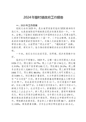 2024年蔡村镇政府工作报告一、2023年工作回顾刚刚过去的2023年,是全面贯彻落实党的XXX精神的开局之年,也是疫情防控平稳转段后经济恢复发展的一年。一年来,全镇上下坚持以XXX新时代中国特色社会主义思想为指导,认真学习贯彻党的XXX和二十届一中、二中全会精神,在县委、县政府和镇党委的坚强领导下,在镇人大的监督支持下,团结带领全镇人民,全面贯彻两业并进、崛起赶超战略,抢抓机遇、谋定快干,奋力推动蔡村镇经济社会发展取得新突破。一年来,我们全力以赴抓项目、优环境,经济发展稳中向好。经济运行平稳增长。2023年,全镇一般公共预算收入完成1026万元,同比增长10.7%;规上工业产值1.54亿元,同比增长9.9%;固定资产投资额1.81亿元,同比增长24.1%;规上服务业营业收入3205.9万元,同比增长80.57%;限上商贸零售额1661万元,同比增长86.6%;农村常住居民人均可支配收入上报31894元。项目建设扩量提质。大力开展项目建设和征迁工作百日攻坚行动,集中攻破蔡村基地等镇级重点工程项目任务55个,完成县级项目建设任务11个,征迁房屋9户849㎡,征收土地207.7亩。全年新引进项目6个,新开工项目4个,新竣工项目3个,在谈项目4个。新增固投入统项目7个,新纳规上工业企业1户,新入限上商贸主体6家。营商环境持续优化。常态化开展访企解难活动,全年累计走访企业150次,做实做细政策解读及政策申报指导,帮助企业申报发明专利2件,帮助解决政策兑现、资金和人才需求等问题38个,满意率达100%。聚焦要素保障,召开企业项目帮扶座谈会10余次,帮助解决企业杆线迁移、项目建设方案图审等问题12个。一年来,我们坚定不移守青山、护绿水,美丽城镇宜居宜游。城乡风貌得到新提升。建立皖南川藏线沿线环境卫生常态化维持机制,成立青山绿水护卫队,全面清理集镇及S208沿线脏乱差194处。开展一店多招专项整治,拆除破旧店招、广告牌等235个,统一安装旅游指示牌60块。开展集镇经营秩序集中整治行动,拆除占道摊位103处,取缔违规经营小皮划艇、小漂流29户170个。加强文旅基础设施建设,完成微改造精提升项目19个,累计打造S208沿线旅游服务型节点46处。开发旅游智慧服务配套项目,实施智慧泊车工程2处,改造提升旅游公厕9处,完成招呼站智能改造13处,全面启用68套技术探头,道路交通更加安全畅通。美丽生态凸显新优势。投入3800万完成汀溪河月亮湾段综合治理工程、狮村小流域水土保持综合治理项目,持续加强镇域主要河道沿线乱搭乱建等综合整治,美丽河道再展新颜。常态化开展汀溪河清网行动,劝导制止各类违法捕鱼行为350余起,渔业资源有效保护。持续做好森林两防工作,除治松材线虫病枯死松木2000余株,组建森林防灭火半专业应急救援队,确保镇辖区内零火情。完成省级封山育林800亩、省级退化林修复800亩、省级森林抚育2500亩。坚持绿水青山就是金山银山理念,成立泾县蔡村镇生态资源开发有限公司,整合土地、生态等资源,探索整合零碎资产新型实体化运营机制。文旅融合呈现新图景。强化文创品牌引领,策划专属品牌口号,邀请设计团队创作特色商业IP形象,打造月亮湾文创品牌。全面建成运营四家文创店,设计定制文创产品44类163款,全年线下售卖产品5200余件,实现增收19.85万元。正式上线智慧一机游蔡村小程序,入驻商家26个,全年通过该平台完成订单232件,交易总额16.1万元。不断丰富旅游业态,建成绿水湾度假村、山屿溪•客舍、静•泊文可居文库——海量学习资料,手机电脑均可下载www.wenkeju.com民宿等一批高端民宿项目,着力推进泾县中徽茶旅融合发展项目、月亮湾银河谷汽车露营地项目等一批体验互动式文旅项目建设,成功举办乡村艺术嘉年华、村BA篮球联赛、机车文化节等一批特色活动,全面填补旅游季节差异。发展乡村夜经济模式,夜购、夜宿、夜游等多种形式夜间经济释放出巨大潜能,烟花秀、乡村大舞台、乐队歌手驻唱等场景为游客带来全新体验。月亮湾景区入选皖美消费新场景,蔡村镇全年接待游客近300万人次,旅游总收入达5.99亿元,分别同比增长150%、139.6%。一年来,我们千方百计补短板、促振兴,和美乡村共建共享。高速推进乡村建设。不断完善乡村基础设施,2023年农村公路联网路工程(隆培路)、村道安全防护工程、朱马路改造升级顺利完工。洗马桥至爱民美丽公路获评全国交旅融合创新项目,入选《中国交通运输2022》年度报告。大力推进杆线序化整治,S208沿线杆线迁移工程、朱马路杆线迁移通信管道及沿线杆线迁改工程基本完工。规范审批农民建房128户,整治四类房5户296.76平方米。加强民宿农家乐污水、油烟排放管理,完