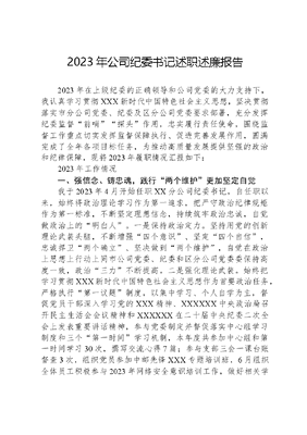 2023年公司纪委书记述职述廉报告2023年在上级纪委的正确领导和公司党委的大力支持下,我认真学习贯彻XXX新时代中国特色社会主义思想,坚决贯彻落实市分公司党委、纪委及区分公司党委要求部署,充分发挥纪委监督前哨探头作用,忠实履行责任使命,围绕监督工作重点切实发挥监督保障执行、促进完善发展作用,圆满完成了全年各项目标任务,为推动高质量发展提供坚强的政治和纪律保障,现将2023年履职情况汇报如下:2023年工作情况一、强信念、铸忠魂,践行两个维护更加坚定自觉我于2023年4月开始任职XX分公司纪委书记,自任职以来,始终将政治理论学习作为第一追求,把严守政治纪律规矩作为第一标准,不断坚定理想信念,持续筑牢政治忠诚,自觉做政治上的明白人。一是保持政治定力。坚持用党的创新理论武装头脑,不断增强四个意识、坚定四个自信,忠诚捍卫两个确立、坚决做到两个维护,自觉在政治上思想上行动上同市公司党委、纪委和区分公司党委委保持高度一致,政治三力不断提高。二是强化理论武装。始终把学习贯彻XXX新时代中国特色社会主义思想作为首要政治任务,严格执行第一议题制度,以集中学习、个人自学为主,督促党员干部深入学习党的XXX精神、XXXXXX中央政治局召开民主生活会会议精神和XXXXXX在二十届中央纪委二次全会上发表重要讲话精神,参与党委制定并督促落实中心组学习制度和三个第一时间学习机制,本年度共参加中心组和第一时间学习30次,撰写交流心得7篇;参与支部三会一课台账督查3次,组织党员参加中邮先锋XXX专题培训班,6月组织全体员工积极参与2023年网络安全意识培训工作,做好相关学习推进工作。三是严守纪律规矩。始终将政治纪律和政治规矩挺在前面,认真落实三会一课、民主生活会、组织生活会等制度,全面贯彻《关于在完善公司治理中加强党的领导的实施意见》,严格执行重大事项请示报告制度、党委前置研究重大事项清单、三重一大决策制度办法,全程参与对支局所改造、金融宣传品要数、固定资产投资和生产经营等三重一大事项进行集体决策,本年度参与党委会30次,总办会36次。严格执行请示报告制度,重大问题及时向市纪委、区分公司党委请示报告,严格执行公务出差廉洁自律承诺制度。二、勇担当、善作为,推进正风肃纪反腐更加坚决有力我紧紧围绕全面从严治党总体部署和中心工作,立足职责定位、聚焦主责主业,坚定不移推进党风廉政建设和反腐败工作向纵深发展。一是扛牢政治责任。3月20日,区分公司纪委牵头召开2022年党的建设暨党风廉政建设和反腐败工作会议,研究制定《2023年XX党的建设工作要点》及重点任务分解表的通知,确保形成一岗双责,人人参与,齐抓共管的监督保障体系。二是凸显监督首责。加强关键业务流程的监督。定期对网点宣传品使用管理等关键业务流程开展监督检查并下发整改通知书;强化选人用人机制的监督。全程参与选人用人工作,做好任前廉政谈话工作,2023年任前廉政谈话3人次。三是强化作风建设。持续开展党性党风党纪教育和廉洁从政教育,坚持党内谈话制度,对党员干部作风、纪律等方面的苗头性问题早发现、早提醒、早纠正、早查处,防止小问题变成大问题,不断巩固和扩大作风建设成果,推动作风建设常态化、长效化,本年度开展提醒谈话2人次,批评教育10人次。四是强化四风监督。重要节日开展中层管理人员廉政集体谈话,教育和引导广大党员干部把纪律和规矩挺在前面,积极营造崇廉尚俭的节日氛围,9月组织领导班子、全体中层管理人员及金融支局长前往洪泽区看守所进行警示教育,现场参观监狱服刑人员的宿舍、放风场所,筑牢思想防线。五是认真落实巡视整改责任和巡察工作主体责任。区分公司纪委认真贯彻落实《关于加强巡视整改和成果运用的实施办法》,抓好集中整改,坚持问题导向,对照整改方案把发现问题一一整改到位,领导班子成员认真组织分管领域巡察整改工作,按月召开分管领域推进会,及时发现并解决整改中遇到的问题,持续跟踪,督促落实,推动职责范围内巡察整改任务落到实处,截至9月底针对巡察反馈的10个主要问题,10个问题已解决,问题解决率100%。制定25项整改措施,25项措施已完成,措施完成率100%。问责16人次,其中给予提醒谈话2人次、批评教育10人次、责令书面检查1人次。经济处罚1400元。共出台规范性文件1项,涉及绿色邮政建设行动方面。三、压责任、管阵地,履行意识形态责任更加主动到位坚持以XXX意识形态工作重要论述精神为指导,持续落实例会制度和协同机制,本年度召开意识形态例会4次,深入开展意识形态专项督查检查1次,召开意识形态专题党委会2次牢牢掌握意识形态工作领导权。一是加强组织领导,健全工作机制。认真贯彻落实上级党委关于意识形态工作部署要求,将意识形态工作摆在重要位置,调整意识形态工作领导小组成员。二是强
