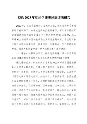 校长2023年度述学述职述廉述法报告2023年,在省委省政府、省教育工委、教育厅和市委市政府的正确领导下,在学校党委的坚强领导下,深入学习贯彻落实XXX新时代中国特色社会主义思想和党的XX大精神,深入开展XXX新时代中国特色社会主义思想主题教育,在实际工作中做好示范和表率作用,以身作则、不懈奋斗,引三学校稳步发展,向着高质量发展和强校升本目标迈进。一、述学:加强政治学习,强化党性锻炼,深入学习贯彻落实XXX新时代中国特色社会主义思想和党的XX大精神强化理论武装,积极参加学习贯彻XXX新时代中国特色社会主义思想主题教育,严格对照学思想、强党性、重实践、建新功总要求,坚持个人自学与集体学习相结合,认真学习《著作选读》等指定教材、必读书目,在全面学习、全面把握、全面落实新思想上下功夫,用党的创新理论来指导工作实践、推动工作落实,在以学铸魂、以学增智、以学正风、以学促干中进一步提升了政治判断力、政治领悟力、政治执行力,深刻领悟两个确立的重大现实意义和深远历史意义,增强四个意识,树牢四个自信,做到两个维护,进一步增强了将学习成果转化为忠诚核心、维护核心、紧跟核心、捍卫核心的思想自觉、政治自觉和行动自觉。带头搞好政治学习,认真讲好专题党课和思想政治理论课充分发挥示范带头作用。按照学校部署,全年参加党委理论学习中心组集中学习12期,讲党课3次,专题调研3次。深刻领会XXX新时代中国特色社会主义思想精神实质,把握精髓要义,全力贯彻落实,以主题教育为主线,全面对标对表,把推动学校高质量发展作为主题教育的着力点和落脚点,一体化推进理论学习、调查研究、检视整改等工作,努力办好人民满意的医学教育。二、述职:以重点项目为抓手,强基固本、深化内涵,全面提升人才培养质量全面落实党委领导下的校长负责制,认真履行校长职责。重点围绕双高计划和提质培优行动计划建设项目,引领学校行政管理工作的全面提升。(一)落实推进现代职业教育体系建设改革重点任务全面落实《加快推进现代职业教育体系建设改革重点任务工作方案》,组织各相关部门申报十大重点任务21项。职业教育信息化标杆学校、康养示范性虚拟仿真实训基地、职业教育药学专业教学资源库、诊断学课程和教材《生理学(第2版)》《外科护理(第2版)》《预防医学(第6版)》等7个项目获省级推荐。(二)全面提升人才培养质量落实国家教学标准。扎实推进2023级专业人才培养方案修订、实施与审核,制订人才培养方案41个,包括普通专科29个,中外合作办学3个,专接本科9个。落实人才培养方案公开制度,规范人才培养方案实施过程中的变更程序。创新人才培养体系。架构学校尚医德,重基础,强技能复合型高素质卫生健康人才培养体系。重点建设国家级高水平专业群1个、省域高水平专业群2个、校级骨干专业群2个。深入推动德智体美劳五育并举模式,以促进学生全面发展为目标,积极构建过程性与增值性综合评价体系。积极推广八段锦等特色体育项目,加强学生体育技能类项目培养,获足球技能省赛二等奖1项,中国大学生跆拳道锦标赛北方赛区三银一铜。完成河北省高校美育工作评估工作。制作劳动教育类资源。突出1+*证书培训内容与人才培养方案的有机融合,实施基于岗课赛证的医学类高水平专业群建设实践。全面深化三教改革。鼓励教师利用教学资源库MOOC等网上资源开展混合式教学。修订学校《技能大赛管理办法》,以赛促教,获全国职业院校技能大赛教学能力比赛二等奖,河北省教学能力比赛一等奖2项,二等奖3项,三等奖1项,实现教学能力比赛国奖零的突破。继续实施教学提质升级专项行动,申报课堂革命典型案例20个。与高教、人卫等出版社联合征集教材编写8批。通过加强技能训练、强化考前培训、实施联考代考制度等形式提升执考通过率,2023年护资考试通过率达94.52%。实施技能竞赛引领工程,承办全国职业院校技能大赛1项、省赛8项。斩获全国职业院校技能大赛一等奖2项,三等奖2项,河北省职业院校技能大赛一等奖10项,二等奖12项,三等奖5项,中药传统技能赛项和老年护理与保健赛项首次在国赛中取得一等奖的历史性突破。提高信息化教学水平。国家智慧教育平台上线精品课61门。获批国家级精品在线开放课程3门,省级优质专业教学资源库1个,精品在线开放课程9门。在河北省教师教学信息化交流活动中获一等奖2项,二等奖3项,三等奖9项。全面推进创新创业教育。双创大赛实现国奖零突破。在挑战杯赛事中荣获国赛一等奖1项,省赛特等奖2项,省赛一等奖3项,省赛二等奖2项,省赛三等奖12项。在学创杯赛事中获得国赛一等奖1项,省赛一等奖1项,省赛二等奖1项,省赛三等奖4项。在互联网+赛事中获得省赛二等奖2项,省赛三等奖1项。(三)提升校企合作水平实施校院(企)联合培养。与北京红十字会急诊抢救中心爱尔眼
