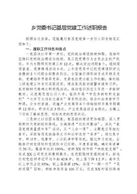 乡党委书记基层党建工作述职报告按照会议安排,现就履行基层党建第一责任人职责情况汇报如下。一、履职工作特色和亮点一是坚决扛牢第一责任,党的政治建设持续加强。我始终坚持以党的政治建设为统领,真正把党建作为主责主业抓严抓实。年内专题研究党建工作12次,解决突出问题8个,组织现场督查、观摩推进活动3次,上年度党委书记抓党建述职评议查摆的2个问题全部整改到位。全面推行领导班子成员联系支部、党建指导员指导支部、支委包抓党小组工作机制,镇村组三级党建工作责任压紧压实。建成家风家训馆暨非遗传习所,抓实新时代精神文明实践活动,推动意识形态工作进一步做细做实。从提高思想认识入手,组织开展学优秀树标杆走前列大学习大讨论大落实等系列活动,结合外出考察学习所得,分乡村旅游、设施产业发展等6个领域组织开展专题调研12场次,研讨交流3场次,产业发展座谈会6场次,全镇上下形成了解放思想、对标先进的思想共识。二是持之以恒固本强基,基层组织建设更加稳固。深入贯彻新时代党的组织路线,全域推进四抓两整治,深化基层党建质量提升年活动,从三会一课、主题党日等细处着手,采取每月发放指导文书和必学选学菜单,通过集中学、研讨学、观摩学、小分队讲学等形式,强化学习实效。全面推行村党组织和党组织书记任期、年度承诺制,确定承诺事项26项,履诺率达到100%。培树XX村市级样板党支部,完成XX公司党支部整顿提升。选优配强村党组织班子,新选任村党组织书记平均年龄42.8岁,较上届下降1.2岁;高中及以上学历占比95%,较上届提高15%,实现一降一升双好双强目标。积极争取资金100万元,完成XX村组织阵地改建搬迁,村级组织活动阵地不达标问题全面清零,全镇基层组织建设标准化水平稳步提升。三是充分释放引领效应,党建品牌内涵不断丰富。坚持党建引领,将互促共融作为目标导向,让党组织走在前,让党员干在先。在机关事业单位党支部组建宣讲小分队8个,组织开展政策理论宣讲15场次;在6个村党支部组建先锋队12个,组织开展爱心结对帮扶行动20余场次,组织带动更具权威,党员在党意识明显增强。持续用力推进党员创业带富和农民增收致富双富工程,深化三链建设,在日光温室小区、科技园区、钢架大棚小区建立党小组,建成产业先锋基地7个,培育种养、三产党员致富先锋岗25个,有效发挥了党组织、党员的聚合辐射和引领作用。四是精准聚焦短板不足,村级集体经济做实壮大。立足资源优势和基础条件,积极督促引导村党组织和村党组织负责人领办创办合作社,实现各村创办合作社全覆盖。不断壮大村集体经济收入,实施4个村分布式光伏发电项目,村集体经济收入增加5万元。各村因地制宜,通过搭建日光温室、整合闲置资产资源、土地整体流转等使村级集体经济收入有了较大增幅。目前村级集体经济收入达到15万元以上的村2个,达到10万元以上的村6个,村党组织为群众办实事的底气更足,更具话语权。二、存在的问题及原因分析一是党内组织生活标准不够高。部分党支部落实三会一课、主题党日等基本组织生活不实不细,仍存在思想上重视,落实上打折扣的现象。二是党建特色亮点主题不鲜明。党建工作与经济工作深度融合不够,在党建引领产业发展上,思路不活,办法不多,党建+作用不突出,利用自身优势挖掘特色、总结经验不足,存在亮点不亮的问题。三是支部班子发展思路不清晰。个别村党支部班子发展规划不科学、不明确,谋划村级长远发展思路眼界不宽,仅停留在保证工作正常运转和稳定上,大胆开拓创新、攻坚克难不够。原因主要有以下几个方面:一是抓基础工作不够细致。在落实抓细三会一课制度等基础性工作上有差距,一竿子到底的精神不够,个别时候存在敷衍应付现象,缺乏一以贯之的钉钉子精神;二是抓党建工作思路不广。思考谋划党建工作深度、广度不够,没有很好地将党建工作放到经济社会大局中考量,平台不宽,抓手不硬,特色亮点和主题内涵不够鲜明;三是监督问责力度不够。对党建工作安排部署多,跟踪问效少,监督形式单一,对发现的问题深入研究不够,缺乏啃硬骨头的精神,导致部分支部存在抓与不抓一个样,干多干少靠资料的应付心理。三、下一步工作思路和主要措施一是突出政治功能,抓实党员学习教育。全面落实五破五立、对标先进的工作要求,以严实措施抓好三会一课、组织生活会、谈心谈话、民主评议党员等基本组织生活制度,实行镇党政办书面派单指导,支部书记亲自抓,支部组织委员、党建指导员配合,包挂领导签单指导的工作机制。不断丰富党员学习教育形式,机关党支部结合党小组会和主题党日,模范开展争做悦读干部打造书香机关主题活动,机关党员带头每月读一本书、每月交流一次心得,营造积极良好的读书学习氛围。利用微信公众号开辟读书交流专栏,引导各支部利用网上党支部开办微党课网上课堂,每月开