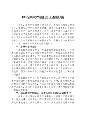 XX检察院政治部主任述廉报告一年来,在院党组的领导和关心下、在同志们的帮忙和支持下,能够听从院党组的工作安排,对工作认真负责,并做到严格要求自己。自己在思想上、工作上都有了很大水准的提升,较好的完成了全年纪检监察工作任务,借此机会,向同志们汇报一下本人今年来的思想、学习和工作状况,请同志们多提批评意见,以利我更好的在来年展开工作。现将自己一年来的学习、工作、廉洁自律等状况总结汇报如下。一、思想和学习方面一是坚持政治理论学习,努力增强政治理论素养。一年来本人能自觉认真学习政治理论和业务知识,努力在工作中提升自已的政治和业务潜力。平时能注重政治理论及党的基础理论知识的学习,能充分利用工作之余的时间自学,关心时事政治,注重读书看报,以提升学习的实效。在学习中持续提升马克思主义的理论水平,提升使用马克思主义的立场、观点和方法观察处理检察院问题的潜力,持续增强从事纪检工作的原则性、系统性、预见性和创造性,并能坚持做到解放思想,实事求是,与时俱进。二是坚持业务学习,切实提升业务水平。坚持每日自学法律专业知识和检察院纪检监察业务学习。同时,透过增强与上级相关部门的沟通与联系,并采取到先进兄弟检察院的纪检监察学习取经,增强纪检监察业务调研等方式,努力增强学习的针对性和有效性。二、结合检察工作实际,认真负责地做好纪检监察工作一年来,我注重结合检察工作实际,认真做好纪检监察工作,较好地履行岗位职责。即时贯彻落实市检察院、区纪委年度党风廉政建设工作会议精神。年初,我把全面贯彻落实市检察院、区纪委纪检监察工作会议精神作为年度党风廉政建设的一项重要任务,在全院干警大会上传达了会议精神,并即时组织落实会议要求,对年度党风廉政建设工作做了具体安排部署。组织全体检察干警层层签定党风廉政职责书,使全体干警持续增强廉政职责意识,依法、礼貌办案。元旦和春节期间用心展开全院廉洁自律工作,切实增强廉洁从检教育,筑牢拒腐防变的思想道德防线,持续学习廉洁自律规定,要求党组成员要以身作则,做好廉洁自律表率。凡在重大节假日前即时组织学习各项自律规定,提出廉洁要求,防止理解吃请、送礼等不良现象的发生。根据我院检察工作实际,对院党组成员实行了党风廉政建设职责分工,对各职责人在党风廉政建设中的基本职责和具体任务实行了明确。全年认真展开了各项专项检查工作:一是用心协助区纪检监察,展开城乡环境综合治理督察工作以及区纪委交办的临时工作,较园满的完成了区纪委交给的各项工作任务。二是展开对自侦案件督察工作。根据上级院关于纪检监察部门对自侦部门侦查工作实行内部执法执纪督察的规定,展开对自侦案件回访考查工作。透过学习相关法律和规定;认真查阅相关案件材料、与承办案件干警交谈,走访发案单位和听取当地群众意见等资料,按督察的范围和事项,对自侦案件的案中、案后展开了督察。三是多次对全院车辆及全体驾驶人员实行了检务督察,今年以来,四次组织全院干警认真学习车辆安全管理相关文件和规章制度,要求全院干警务必时刻绷紧车辆安全这根弦,时刻牢记安全职责重于泰山。个性要求全体驾驶人员安全意识要入耳、入脑、入心,筑牢车辆安全防线,确保车辆安全无事故。认真展开了重大节假日期间的检务督察工作。结合省、市院组织的各种专项活动,还自行对本院*管理、车辆管理、办案安全、机关作风、禁酒令落实状况等方面工作实行了自查自纠。四是展开学习《廉政准则》和《廉洁从检若干规定》活动规范从检行为,促动了各项主题教育。要求全院干警深入学习领会,提升思想理解,引导全院干警增强道德意识和法纪观点,准确把握廉洁从检的各项政策界限,切实增强如实报告个人相关事项的自觉性,自觉理解党组织的监督。并在我院内部网站,廉政建设专栏连续登载《廉政准则》和《廉洁从检若干规定》学习资料,并举行了知识测试,全院干警取得了较好的成绩。五是充分发挥检务督察工作在检察工作中的推动作用,努力创新思维,全力抓好检务督察工作,持续强化内部监督,今年展开检务督察5次,展开了对执法办案安全、检风检纪、警械警车管理等方面的专项督察,把监督工作贯穿于办案全过程,逐步把对执法办案活动的监督,从事后监督扩展到事前监督和事中监督。透过展开检务督察,有力的促动了各项检察业务工作的健康有序实行,为确保目标工作任务的完成打下了坚实的基础,为办案安全、车辆安全起到了用心的促动作用。六是用心展开廉政文化宣传工作。在院局域网廉政建设栏挂出廉政建设、警示资料文章近30篇。年初,院纪检组致干警家属的家庭助廉信沟通了单位与干警家庭的联系,进一步树立了干警们准确的世界观、人生观、价值观,促动了各项工作的顺利展开。三、在在思想上从严要求自己,带头廉洁自律我身为党组成员、纪检组长,反腐倡廉工作是我的重要职责,不以权谋私,廉洁自律是基本的要求和务必具备的素养。一年来,我能结合检察工作任务,认真落实上级院相关党风廉政建设的规定