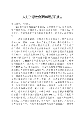 人力资源社会保障局述职报告各位领导,同志们:xxx局全面贯彻xxx决策部署,坚持聚焦中心、服务大局,坚持履职担当、精细高效,推动全x基层组织、干部队伍、创业就业、劳动监察等工作不断取得新进展、新成效。现汇报如下:一是突出真章真招,在服务大局中主动作为。紧盯关系全局的大事、要事、难事,集中力量攻坚克难,全力助推中心工作破局。一是千方百计抓创业促发展。扎实开展万人助万企活动,用足用活创业就业服务政策,充分发挥创业担保贷款促进创业带动就业的支撑作用,截至目前新增创业贷款扶持项目xx家,涉及贷款额xxx万元,带动吸纳就业xxx人;与河南xx学院联合举办河南省豫中暨xx类xxx届毕业生春季就业双选会,xxx余名毕业生与用人单位达成就业意向,现场签约xxx余人;开展线下农村转移就业技能培训xx期,累计参训人数达xx人。截至x月份,全x实现城镇新增就业xxx人,城镇登记失业率控制在xx%以内;总结的《传统和新就业形态灵活就业人员政策建议》经验交流稿件被国务院采用;x月上旬,圆满举办xxx首届创业创新大赛;x月底在全市第二季度返乡创业观摩评比中我x斩获全市第x名。二是坚定不移抓改革激活力。坚持把省市机构改革政策要求与xxx实际紧密结合起来,加强与市委组织部、市委编办对接沟通,加快推进示范x机构改革和编制规范。截止目前,xxx事业单位改革方案已经确定,行政单位方案报省、市编办审批,在全市事业编制紧张的前提下协调市委编办划拨事业编制xxx名,各项工作机构和职责逐步理顺。三是从严从实抓换届优队伍。突出抓好xx镇党委换届,从严把好动员部署、教育培训、代表推荐、人选考察、召开大会等环节,共联审推选xx镇党代会代表xxx人,推选镇党委委员x人,镇纪委委员x人,高标准高质量完成了换届任务,是历次xxx镇领导班子换届中标准最高、程序最严、风气最正、效果最好的一次换届会议,受到了市委组织部主要领导的高度评价。同时,通过换届,拉动x个街道班子调整,镇办领导班子战斗力凝聚力明显提升。二、突出真抓真干,在坚守主业中提质增效。坚持抓主业当主力,把结果导向贯穿组织人事工作始终,持续用力抓基层打基础、严考核育队伍、建机制惠民生。一是基层党建注重规范有力。以分类评定、分级管理为抓手,统筹推进农村、机关、社x、学校、两新等各领域基层党建。扎实开展后进村整顿,实行五个一工作法,x个后进村全部按时完成整顿转化;稳步推进城市社x治理,建强社x红色引擎,新成立物业党支部x个、物业联盟党支部x个,选派党建指导员x名,初步建立社x党组织、红色物业、业委会三方联动的社x治理新模式。严把发展党员入口关,《实行五个三机制提升农村党员发展规范化水平》稿件被省委组织部《组工信息》专期刊发。在全市率先举办百年党史暨发展成就主题展,活动被纳入市委庆祝建党xxx周年系列活动内容,市委主要负责同志带领市级领导及新党员代表重温入党誓词并参加我x展览。截止目前,共吸引xxx家单位、xxx万人次打卡参观。举办全x七一表彰大会,指导全x各级党组织开展主题党日活动xxx次、讲党课xxx人次,走访慰问辖x困难党员、老党员xxx人,为辖xxxx名老党员颁发光荣在党50年纪念章。组织召开全x党员代表会议,推选各领域基层党员代表xxx名,选举产生x名市级党代表,市委下派代表和x级推荐代表均满票当选。二是干部队伍注重素能提升。坚持凭事业选干部、凭实绩用干部的用人导向,对镇办班子知识、能力、年龄结构进行综合分析研判,结合乡镇领导班子换届,对四个镇办领导班子调优补强,激发基层干部干事创业积极性。加强干部教育培训,上半年组织x期xxx大讲堂、累计培训xxx文可居文库——海量学习资料,手机电脑均可下载www.wenkeju.com余人次。持续完善干部正负清单制度,详细记录备案各单位每月工作实绩,收录全x科级干部工作实绩表x季度xxx余份。进一步完善差异化考评标准细则,通过分类述职、重点工作评价等多种方式,认真筹备开展差异化述职考评,切实以考评树导向、激活力。三是人才引进注重优质紧缺。坚持云招聘与专场招聘相结合,依托xx省招才引智平台,共收集辖xxx家用人单位共xxx个岗位需求信息,为xxx筑巢引凤提供坚实保障。针对xxx高素质专业人才紧缺的问题,积极参加全省招才引智招聘活动,郑州大学专场现场收到简历xx份,其中硕士研究生xx名,初步达成就业意向xx人。四是劳动监察注重有为有效。健全完善拖欠农民工工资预警机制,上半年开展专项检查x次,督促全xxx个项目、xx个标段进行实名制登记、缴纳工伤保险、开设农民工工资专用账户,实行银行代发xx家,整改补签劳动用工合同xxx份;严格执法惩戒,上半年以来共接待投诉xx起,下达《调查询问通知书》xx份,追回拖欠xxx名工人工资