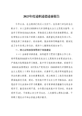 2023年度述职述德述廉报告今年以来,在上级部门的关心支持下,在各部门单位的全力配合下,本人坚持以XXX新时代中国特色社会主义思想为指导,认真学习贯彻党的XX大精神,贯彻落实上级各项决策部署要求,团结带领办公室全体干部职工高标准、高质量扎实推进各项工作,有效发挥了参谋助手、综合协调、服务保障等职能作用,较好完成了全年各项工作任务,现将个人履职情况报告如下:一、持之以恒加强领导班子自身建设(一)主动学习强素质。始终把学习贯穿于整体工作之中,将学思践悟XXX新时代中国特色社会主义思想作为首要政治任务,严格执行每周集体学习制度,集中学习党的XX大精神,系统学习《XXX谈治国理政》《中国共产党简史》《XXX新时代中国特色社会主义思想三十讲》等系列读本,认真学习上级召开的重要会议作出的重大部署、出台的重要政策,有力确保了上级各项决策部署落地落实见效。同时,坚持集中学习与自主学习相结合,政治理论学习与业务知识学习两兼顾,看专家讲课录像辅导与外出参观学习、接受培训两不误,全年累计组织集中学习29次、外出参观学习2次,干部职工自主学习42次,人均撰写心得体会4篇,干部职工理论水平和业务能力稳步提升。(二)党建引领促发展。严格执行三会一课、组织生活会、民主评议党员和落实全面从严治党主体责任,推动班子工作向规范化、民主化、科学化、精细化发展。安排专人负责党务、综合治理、精神文明、计划生育、工青妇等具体工作,各项工作取得阶段性成效。积极培育和践行社会主义核心价值观,注重家风家教养成,引导党员干部廉洁修身、廉洁齐家,公私分明、坚守底线。召开支部党员大会23次、支部委员会17次,开展主题党日活动11次,领导干部讲党课4次;吸纳培养积极分子4人,发展对象转预备党员2人,预备党员转正2人。(三)民主决策聚合力。正确处理民主与集中、个人与集体的关系,坚持集体领导、分工负责的原则,班子成员之间相互协调、相互配合、相互支持、相互监督,根据人事变动和工作需要及时对领导班子工作分工进行调整。在办公室重大事项决策方面坚决做到不临时动议、不事先定调、不显露倾向,严格落实末位表态制,充分听取班子成员意见,调动班子成员积极性和主观能动性,集思广益、科学决策,有力推动了办公室各项工作顺利开展。(四)廉洁从政守底线。严格遵守廉政建设各项规定,切实兑现廉政承诺,从严要求配偶、子女及身边工作人员,规范8小时以外交往圈,有效避免了违纪行为发生。同时,不定期同干部职工进行廉政谈话,对干部职工思想认识、理想信念、履职尽责、廉洁自律提出明确要求,全年累计开展主要领导对班子成员廉政谈话4次,班子成员对分管科室干部廉政谈话6次6人。二、主动作为全面提升参谋辅政能力(一)政府活动安排科学精细。坚持将标准化、规范化、精细化服务理念贯穿工作始终切实增强办公室对政务工作的统筹调度,主动向领导反馈,超前为领导谋划好基层调研、各类会议、现场办公等各项工作,及时了解掌握、统筹安排县长、各副县长参加的政务活动,确保了各项活动有序开展。(二)桥梁纽带作用充分发挥。积极主动加强横向联系与纵向对接,不断提升工作效率,确保政令畅通。主动接受人大、政协及各族群众监督,117件人大代表议案、建议和91件政协委员提案满意率达98%。(三)办文办会水平明显提升。严格落实中央八项规定和《关于解决形式主义突出问题为基层减负的通知》要求,大力转变文风会风,有效控制和压减发文及会议数量,公文处理时效、会议召开质量不断提升。累计接收上级来文384件,编发各类文件314件、会议纪要28件;服务办公例会8次、常务会议11次、党组会议10次。(四)政务督查督办纵深开展。全面推行重点事项督办制度坚持高效、有序、务实、创新,针对不同情况,区别轻重缓急抓好督查督办工作,始终做到重大决策部署主动督查,贴近工作重心及时督查,对重要会议精神贯彻落实定期督查,开展督促检查12次,有力推动了各项重点工作落实落细。(五)政务信息工作取得实效。坚持以服务领导决策为目标围绕阶段性重点工作,不断挖掘特色信息,总结典型经验做法,提供全方位、多层次适销对路的信息服务。同时,严格执行全员办信息工作机制,多形式充分调动各科室开展信息工作的积极性。累计上报政务信息535条。(六)机关公务接待高效规范。严格执行中央八项规定及其实施细则精神,实行先审批、后接待,围绕规范是要求、安全是底线、规定是标准,准确把握公务接待的特点和规律,在规范化、精细化、个性化方面狠下功夫,用心用情提供优质高效服务,在接待服务中展现特色,树立良好城市形象。累计开展公务接待110余批次、1500余人。三、统筹兼顾确保各项工作高效运转(一)全力守牢安全生产底线。始终绷紧思想之弦,强化担当作为,安排机关事务服务中心对党政综合楼内水、电、讯进行全方位检查,规范干部职工用电用水用火安全,