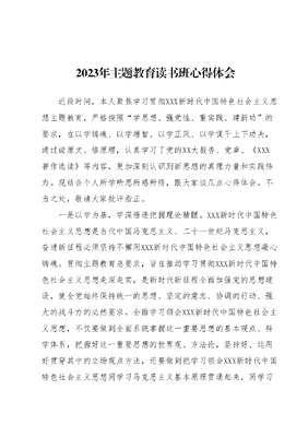 2023年主题教育读书班心得体会近段时间,本人聚焦学习贯彻XXX新时代中国特色社会主义思想主题教育,严格按照学思想、强党性、重实践、建新功的要求,在以学铸魂、以学增智、以学正风、以学促干上下功夫,通过读原文、悟原理,认真学习了党的XX大报告、党章、《XXX著作选读》等内容,更加深刻认识到新思想的真理力量和实践伟力。现结合个人所学所思所感所悟,跟大家谈几点心得体会。不当之处,敬请大家批评指正。一是以学为基,学深悟透把握理论精髓。XXX新时代中国特色社会主义思想是当代中国马克思主义、二十一世纪马克思主义,奋进新征程必须坚持不懈用XXX新时代中国特色社会主义思想凝心铸魂。贯彻主题教育总要求,旨在推动学习贯彻XXX新时代中国特色社会主义思想走深走实,是新时代新征程全面加强党的思想建设,使全党始终保持统一的思想、坚定的意志、协调的行动、强大的战斗力的必然要求。全面学习领会XXX新时代中国特色社会主义思想,不仅要做到全面系统掌握这一重要思想的基本观点、科学体系,把握好这一重要思想的世界观、方法论,坚持好、运用好贯穿其中的立场观点方法,还要做到把学习领会XXX新时代中国特色社会主义思想同学习马克思主义基本原理贯通起来,同学习党史、新中国史、改革开放史、社会主义发展史贯通起来,同新时代进行伟大斗争、建设伟大工程、推进伟大事业、实现伟大梦想的丰富实践贯通起来,准确把握这一重要思想的理论逻辑、历史逻辑、实践逻辑,从而不断增进对党的创新理论的政治认同、思想认同、理论认同、情感认同,自觉用XXX新时代中国特色社会主义思想指导各项工作。要把党的创新理论学习、党性修养、实践锻炼、开创新局统一起来,有利于教育引导广大党员、干部树立正确的权力观、政绩观、事业观,增强责任感和使命感,不断提高推动高质量发展本领、服务群众本领、防范化解风险本领,加强斗争精神和斗争本领养成。二是以实为要,做到学以致用知行合一。不深入了解,就如同一束光线照在物体上,无法把握一丝一毫;不亲身实践,就如同水中的车、陆地上的船,无法享受一丝一毫。在当前时期全党正在如火如荼地开展学习与实践相结合的主题教育。其突出特点是,坚持教育与实践相互促进,要求党员干部将学习、思考与行动相互贯通,将理论知识转化为坚定的信仰和党性修养,并进一步推动本职工作的发展和进步。可以说,学以致用、知行合一,直接决定了主题教育的质量与效果,并推动全党积极作为、不断创新,为事业发展开启新的篇章。回想起延安整风时期,毛泽东曾批评一些学风不正的人。他们手中的马克思主义理论就像是一把箭,被搓来搓去,连声赞曰:好箭!好箭!却老是不愿意放出去。这种行为可谓是空谈理论,而无法付诸实践。而这次主题教育的总要求是学思想、强党性、重实践、建新功,这一要求鲜明地体现了我们党一贯坚持的认识与实践相结合、理论与实际相联系、改造主观世界与改造客观世界相统一的原则。我们要着力解决理论学习、政治素质、能力本领、担当作为等方面的突出问题。要举旗铸魂,备战打仗,改进作风,激发精神状态,凝聚奋进力量,依靠顽强斗争打开xxx事业发展新天地三是以严为先,清正廉洁营造良好生态。XXX曾指出,理想信念是我们精神上的钙。没有理想信念,理想信念不坚定,精神上就会缺钙,就会得软骨病,就可能导致政治上的变质、精神上的贪婪、道德上的堕落、生活上的腐化。从延安精神到长征精神、从红船精神到铁人精神、从航天精神到抗疫精神,崇高信仰、远大理想发挥着巨大激励和鼓舞作用,让我们党穿越百年艰难历程,写下了让世界瞩目的中国速度、中国神话。良好的政治生态是全面建设社会主义现代化征途上冲锋陷阵的原动力,我们要谨慎对待手中的权力,握紧修身正己的方向盘,找好秉公用权的坐标轴,用好干事创业的助推器,时刻牢记初心和使命,以更加清醒的认识、更加廉洁的行动、更加振奋的精神、更加务实的工作,为推动社会经济高质量发展营造风清气正的政治生态。