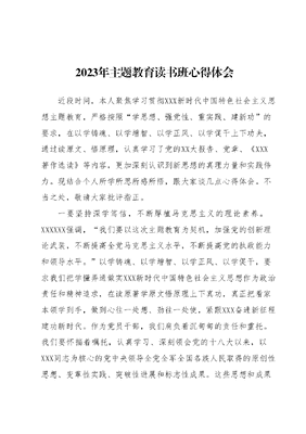 2023年主题教育读书班心得体会近段时间,本人聚焦学习贯彻XXX新时代中国特色社会主义思想主题教育,严格按照学思想、强党性、重实践、建新功的要求,在以学铸魂、以学增智、以学正风、以学促干上下功夫,通过读原文、悟原理,认真学习了党的XX大报告、党章、《XXX著作选读》等内容,更加深刻认识到新思想的真理力量和实践伟力。现结合个人所学所思所感所悟,跟大家谈几点心得体会。不当之处,敬请大家批评指正。一要坚持深学笃信,不断厚植马克思主义的理论素养。XXXXXX强调,我们要以这次主题教育为契机,加强党的创新理论武装,不断提高全党马克思主义水平,不断提高党的执政能力和领导水平。以学铸魂、以学增智、以学正风、以学促干,要求我们把学懂弄通做实XXX新时代中国特色社会主义思想作为政治责任和精神追求,在读原著学原文悟原理上下真功,真正把看家本领学到手,做到心往一处想、劲往一处使,紧跟XXX奋进新征程建功新时代。作为党员干部,我们肩负着沉甸甸的责任和重托。我们要怀揣着嘱托,认真学习、深刻领会党的十八大以来,以XXX同志为核心的党中央领导全党全军全国各族人民取得的原创性思想、变革性实践、突破性进展和标志性成果。这些思想和成果是在全面建设社会主义现代化国家的进程中,为了实现高水平科技自立自强而展开的。对于这一战略抉择,我们应该深入认识并坚决落实。同时,这也是推动高质量发展的必由之路,是我们要坚定不移地扛起的光荣使命。在实现这一目标的过程中,我们需要站在更高的角度看待问题,更深入地分析问题,更准确地把握工作方向。只有这样,我们才能真正做到勇担第一方阵的光荣使命。为了更好地实现这一目标,我们需要从灵魂深处发出共鸣,从思想深处得到转化。我们要深化对XXX新时代中国特色社会主义思想的理解和认同,不断增强理想信念,铸牢对党的忠诚,始终站稳人民立场。只有这样,我们才能成为坚定信仰者和忠实实践者,为实现中华民族伟大复兴的中国梦而不懈奋斗!二要坚持反躬自省,不断练就忠诚于党的政治本色。2022年3月1日,XXXXXX在中央党校中青年干部培训班开班上对青年干部提出了时刻自重自省,严守纪法规矩正心明道、怀德自重的殷切希望。与人不求备,检身若不及,中华民族历来重视自省的力量。作为一名党员干部,要注重自重自省、崇德修身,时刻三问吾身,是否树立反躬自省的意识、是否具备反躬自省的担当、是否达到反躬自省的要求,做到一心为公、一身正气、一丝不苟。确实,人们常常会在面对自身的不足和缺陷时产生逃避心理,试图掩饰或推卸责任。如果为错误找借口,错误就会变得更加明显。如果我们放任这些缺点,久而久之,这将会形成一个恶性循环,最终导致严重的后果。XXXXXX明确指出,担当和斗争是一种崇高的精神,它需要无私的品质和无畏的勇气。为了做到自我反省,我们必须拥有这种担当精神,掌握斗争的艺术。对于青年党员干部来说,现在是锻炼和塑造自己的关键时期,因此他们需要形成一种自我反省的责任感不回避错误,不惧怕经常犯错,不掩饰问题。每个人都有过错误但关键在于我们能否从错误中学习,从而避免再次犯错。作为一名青年党员干部,我们应该有勇气正视自己的不足和缺陷,有决心去与这些不足和缺陷作斗争。只有这样,我们才能不断总结成功的经验和失败的教训,实现自我净化、自我完善、自我革新和自我提高。三要坚持知行合一,不断涵养脚踏实地的实干品格。任何事物的发展都需要经历一个从微小到壮大、从数量到质量的过程。对于党员干部来说,许多工作的推进都无法一蹴而就,没有任何捷径可以一步登天。只有经过长期不懈的努力和坚持,我们才能在磨砺中生根发芽、开花结果,就好比修建房屋,地基虽然深埋地下,不显山不露水,但却支撑着整个房屋的稳固。因此,党员干部要胸怀大局、脚踏实地,坚定一张蓝图绘到底的信念,积少成多,推动事业发展。要树立为民造福的政绩观,既要切实为老百姓办实事、做好事、得实惠,也要注重长远利益,多为后人作铺垫、打基础、利长远。要多为事业添砖加瓦,而不是只追求个人利益,不追求短、平、快的显绩,要努力干出群众认可、经得起时间检验的真业绩。