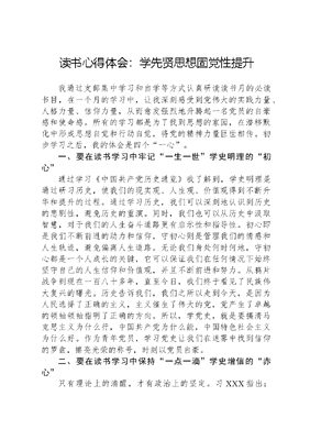 读书心得体会:学先贤思想固党性提升我通过支部集中学习和自学等方式认真研读读书月的必读书目,在一个月的学习中,让我深刻感受到党伟大的实践力量、人格力量、信仰力量,从而愈发强烈地升腾起一名党员的自豪感和使命感。所有的学习都是为了找到思想的家园,在潜移默化中形成思想自觉和行动自觉,将党的精神力量巨世相传。初步学习之后,我的体会是四个一心。一、要在读书学习中牢记一生一世学史明理的初心通过学习《中国共产党历史通览》我了解到,学史明理是通过研习历史,使我们的现实观、人生观、价值观得到不断升华和提升的过程。通过学习历史,我们可以深刻地认识到历史的悲剧性,避免历史的重演。同时,我们也可以从历史中汲取智慧,对于我们的人生奋斗道路更有启示性和指导性。初心即是我们不断前进的动力和信仰,守初心则是管理我们的情感和人生轨迹,避免偏离人生道路。无论我们身处何时何地,守初心都是一个人成长的关键,它可以保证我们在任何情况下始终坚守自己的人生信仰和价值观,并且不断前进和努力。从鸦片战争到现在一百八十多年,直至今日,我们终于看见了民族伟大复兴的曙光。历史告诉我们,我们之所以走到今天,是因为人民选择了正确的主义,主义催生了伟大的党,党产生了卓越的领袖领袖指明了正确的方向。所以,学党史,就是要搞清马克思主义为什么行,中国共产党为什么能,中国特色社会主义为什么好。作为青年党员,学习党史让我们在迷雾中找到信仰的罗盘,擦亮光荣的称号,时刻以党员自豪。二、要在读书学习中保持一点一滴学史增信的赤心只有理论上的清醒,才有政治上的坚定。习XXX指出:中国共产党人依靠学习走到今天,也必然要依靠学习走向未来。在读《中国共产党历史通览》、《苦难辉煌》、《毛泽东文选》这几本书时,我深深感受到,以史为镜,可以知兴替。一百年来,披荆斩棘、历经风雨,战胜了一次又一次艰难险阻。在那风雨如磐的时光里,无数英雄烈士用血肉身躯传递绵绵革命火种,伟岸领袖先锋以坚定信念领导先进大义政党。中国能够由软弱贫穷、落后挨打的国家转变为独立自主屹立于世界民族之林的强国,都是先辈们浴血奋战的结果。这伟绩将永远载入史册,铭刻在每一个华夏儿女的心中,激励全国人民开辟复兴之路。作为警校生,我们更要知史爱党、不忘初心、砥砺奋进;尊重历史、立足眼前、放眼未来,不断在学习中锤炼自身党性修养,并从中汲取更多积极力量。三、要在读书学习中坚定一心一意学史崇德的决心我们应始终坚持把提升党性修养、道德情操作为必修课,深刻认识对党忠诚是共产党人首要的政治品质,对党忠诚必须一心一意、一以贯之,必须表里如一、知行合一,任何时候任何情况下都不改其心、不移其志、不毁其节,与党同心同德。深刻认识以德修身、以德立威、以德服众是干部成长成才的重要因素。广大党员干部应做守德的践行者、示范者,始终厚植人民至上情怀,厚植良好家风,守望道德高线,严守纪律底线,始终慎独慎微、严于律已,始终以天下为己任、以廉洁修身齐家,任何时候都能经受住诱惑、经得起考验、挺直共产党人精神脊梁,交出不负时代、不负人民的合格答卷。心中有信仰,脚下有力量。新时代新征程,面对世界百年未有之大变局,行走在全面建设社会主义现代化国家新征程中,作为一名党员干部就应在学习党史中明大德、守公德、严私德,让党的光荣传统和优良作风永放光芒,必能在新时代长征路上赓续精神、续写荣光。四、要在读书学习中常存一硅一步思想力行的恒文可居文库——海量学习资料,手机电脑均可下载www.wenkeju.com心敢于作为,勇于担当,是中国共产党人的立身之本、为政之基,也是成事之要。对于各级干部来讲,学史力行既体现在能不能以高的政治站位、高的政治标准要求自己上,更体现在能不能立足岗位,讲担当、办实事、开新局。在学习的过程中,学会正视问题、解决问题,在党史中寻找问题的解决方法,走出机关,走进群众,学会用群众工作方法来做基层工作。在经典书籍中学习大局、格局思维,在工作中咬定青山不放松,在全局中胸怀功成不必在我的政绩观,一切为了人民,体悟"江山就是人民,人民就是江山。文可居文库——海量学习资料,手机电脑均可下载www.wenkeju.com