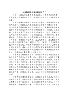 释放数据潜能筑基新质生产力当前,如何激发海量数据要素潜能,打造典型应用场景,更好培育和发展新质生产力,是我国实现科技自立自强的关键选择。在新一轮科技革命和产业变革大背景下,数据量和算力呈爆炸性增长,数据已成为驱动经济社会发展的关键生产要素,算力则是激发数据要素潜能的新型生产力。海量的数据和新型的算力为培育新质生产力奠定了坚实的基础。大数据、人工智能、区块链和量子计算等新技术加快赋能千行百业,战略性新兴产业和未来产业在这一沃土中快速成长,开辟新赛道,塑造新动能,形成新优势,成为我国科技自立自强的排头兵。经过多年发展,凭借完备产业体系、超大规模市场、海量数据资源和丰富应用场景等优势,我国已在5G、大数据、人工智能等新技术方面取得先机,为我国战略性新兴产业和未来产业构筑了广阔发展空间。对此,应充分利用好我国海量数据要素和丰富应用场景,从供需两端发力盘活数据市场,发挥数据要素乘数效应,为推动高质量发展注入不竭动力。完善数据基础制度是前提。新质生产力是符合新发展理念的先进生产力质态,特点是创新,关键在质优,本质是先进生产力。数据作为数字经济时代的基础性和战略性资源,是新时代科技创新的关键要素。激活数据要素价值,推动生产力跃迁升级,是在数字经济时代培育和发展新质生产力的核心要义。应持续加快构建数据基础制度体系,不断完善和优化顶层设计,释放数据要素潜能,推动数据驱动型创新,倍增科技创新效能,催生新产业、新模式、新动能,为生产力的能级跃迁奠定坚实基础。打造典型应用场景是基础。数据的价值在于应用,应用的关键在于场景。应结合不同行业的基础条件和数据禀赋,尤其是颠覆性技术和前沿技术,推动数据要素在不同场景、不同领域的使用,破解传统性约束,扩展生产可能性边界,寻找不同场景下的最优解。要把挖掘高价值数据要素应用场景作为主攻方向,围绕具有先发优势的潜在关键技术和引领未来产业的前沿技术,打好关键核心技术攻坚战,使原创性、颠覆性科技创新成果竞相涌现,探索一批跑得通、有成效、可复制推广的典型案例,以点带面,赋能产业深度转型升级,完善现代化产业体系。同时,要继续创造更加丰富的应用场景,发挥场景牵引作用,推进数据要素在关键行业和领域的广泛应用,培育以数据为关键要素的新质生产力。发挥数据乘数效应是关键。新质生产力是创新起主导作用具有高科技、高效能、高质量特征,以全要素生产率大幅提升为核心标志的新型生产力。发展新质生产力,是突破卡脖子问题与牵住创新牛鼻子的关键所在。作为新型生产要素,数据要素的协同复用和融合效应,能够为战略性新兴产业和未来产业发展提供不竭动力。作为最先进、最活跃的生产要素,数据要素对战略科技、创新资本和顶尖人才等创新生产要素具有乘数倍增作用,通过生产要素1+N的创新性配置,大幅提升全要素生产率,形成创新发展合力,助推新质生产力内涵发展。要创新生产要素配置方式,促进数字经济和实体经济深度融合,形成更多新质生产力,为构建现代化产业体系注入强大动力。文可居文库——海量学习资料,手机电脑均可下载www.wenkeju.com