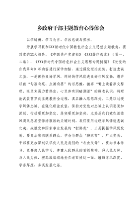 乡政府干部主题教育心得体会以学铸魂,学习为首、学出忠诚与担当。开展学习贯彻XXX新时代中国特色社会主义思想主题教育,要对党的XX大报告、《中国共产党章程》《XXX著作选读》(第一、二卷)、《XXX新时代中国特色社会主义思想专题摘编》《论党的自我革命》等内容进行深学细悟,通过强化理论武装、打造忠诚之基。一是保持良好学风。用好的学风促进良好作风发扬,摒弃以前勾画有痕、点滴有墨的旧思维,抛弃嘴上读着原文原理、眼里充满力量热血、心里却有阴暗潮湿的麻木认识,将理论武装贯穿到主题教育全过程,真正融入思想深处。二是以过硬学风铸忠诚。在强化理论武装、保持对党绝对忠诚上认识要更加深刻、行动要更加坚定、落实要更加坚决,尤其是我们党在面临风高浪急甚至惊涛骇浪的关键时刻,我们要用过硬学风铸造忠诚之魂,战胜党和国家事业发展的拦路虎。三是提振学风促发展。要更加密切联系群众,学会与群众聊家常,广大党员、干部要更加深刻认识到人民是我们的衣食父母,要向书本学习,更要向人民学习,尊重人民群众的首创精神,拜人民为师、与人民为伍,把屁股端端地坐在老百姓这一面,增强学风深度、学养厚度,夯实发展之基。以学增智,学用结合、提高站位和素养。开展学习贯彻XXX新时代中国特色社会主义思想主题教育,广大党员、干部要从党的科学理论中悟规律、明方向、学方法、增智慧。一是抽丝剥茧条理清、面面俱到作决策。要站稳人民立场,增强旗帜鲜明讲政治的政治修养。要有抽丝剥茧的耐心和决心,主动发现人民群众生产生活规律性特征,在为民办实事、解难事过程中,要从复杂事务中把握事务的规律性、从苗头问题中发现事务的趋势性、从偶然问题中认识事务的必然性要有面面俱到的信心和恒心,站在讲政治、顾大局、重落实的高度作决策,力求面面俱到,不可顾此失彼,也不可虎头蛇尾,更不可朝令夕改,决策要经得起人民和实践的检验。二是庖丁解牛关键明、包罗万象强思维。将XXX新时代中国特色社会主义思想所蕴含的世界观、方法论和贯穿其中的立场观点方法转化为自己干事创业的科学思想方法,在提高认知水平上有新高度。要有庖丁解牛的行动力,对待群众所急所思所盼的民生事,要有坐不住的危机感、等不得的紧迫感要有详实的调查研究、充分的规律性认识、过硬的业务素质、娴熟的技艺技巧,突出在什么地方用什么刀的能力,提升解决问题时具体问题具体分析的能力水平。要有包罗万象的思维党员、干部要切实提高战略思维、辩证思维、系统思维、创新思维、历史思维、法治思维、底线思维,做到善于把握事物本质、把握发展规律、把握工作关键、把握政策尺度,全面增强工作预见性、主动性、前瞻性和创造性。三是得心应手强实践、一应俱全促发展。广大党员、干部密切联系群众的行为要更加自觉,实事求是的良好作风要更加扎实。要有得心应手的实践能力,在思想上应该消除推、拖、绕、慵、懒、散弊病在解决群众民生事、办好群众急难事、完成群众喜忧事上应该具备更加多样的处理方式、做事方法、成事之道。要有一应俱全的实践能力,通过开展主题教育,广大党员、干部要不断补齐知识盲点、业务盲区、技术盲面,在做群众工作上应该多一些群众说、少一些干部谈,多一些集体商、少一些一言堂,多一些俯身干、少一些高调门,焊牢素质底板、补齐业务短板,全面推进经济社会发展。以学正风,夯实作风、严肃纪律和规矩。通过开展主题教育,着力解决党风政风问题,教育引导广大党员、干部对标党风要求找差距,对表党性要求查根源,对照党纪要求明举措,促进党风政风廉洁清正、好的作风蔚然成风。一是务实之风常存,调查研究隔层纸、解决问题隔座山,调查研究要贯穿主题教育全过程,力戒只调查不研究、只研究不调查等形式主义,要将第一批主题教育调研成果转化为第二批主题教育工作之要,指导第二批主题教育以务实作风高位推进,力戒形式主义、官僚主义,为基层工作减负。二是清廉之风常驻,通过开展主题教育,基层干部廉洁思维更应树牢、廉洁底线更要加固廉洁风险点更要明确,基层部门要将践行全心全意为人民服务宗旨与主题教育相结合,秉持说办就办、马上就办、办就办好原则,自觉加强廉洁自律责任意识,将群众的事情认认真真办好办优。三是俭朴之风常在,通过开展主题教育,广大党员、干部尤其是领导干部要将生活作风作为常态化监督的内容,时刻筑牢贯彻落实中央八项规定及实施细则精神的堤坝,切勿出现大醉干部大睡干部相声式干部等损害我们党形象的干部,要在生活中积极塑造勤俭、朴素的新时代好干部,密切好干群关系、助力发展。以学促干,破题为纲、助推长治久安和高质量发展。通过开展主题教育,在全党范围内匡正干的导向、增强干的动力、形成干的合力。要充分认识到人民是我们最大的情感寄托也是我们干事创业的最大底气。一是造福人民的决心不动摇。破解人民群众发展