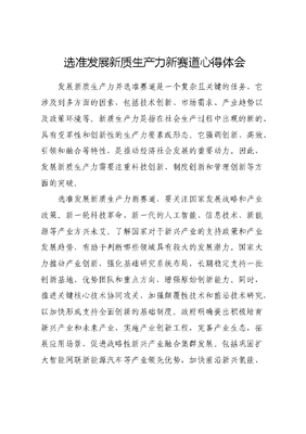 选准发展新质生产力新赛道心得体会发展新质生产力并选准赛道是一个复杂且关键的任务,它涉及到多方面的因素,包括技术创新、市场需求、产业趋势以及政策环境等。新质生产力是指在社会生产过程中出现的新的、具有变革性和创新性的生产力要素或形态。它强调创新、高效、引领和融合等特性,是推动经济社会发展的重要动力。因此,发展新质生产力需要注重科技创新、制度创新和管理创新等方面的突破。选准发展新质生产力新赛道,要关注国家发展战略和产业政策。新一轮科技革命,新一代的人工智能、信息技术、新能源等产业方兴未艾。了解国家对于新兴产业的支持政策和产业发展趋势,有助于判断哪些领域具有较大的发展潜力。国家大力推动产业创新,强化基础研究系统布局,长期稳定支持一批创新基地、优势团队和重点方向,增强原始创新能力。同时,推进关键核心技术协同攻关,加强颠覆性技术和前沿技术研究,以加快形成支持全面创新的基础制度。政府明确提出积极培育新兴产业和未来产业,实施产业创新工程,完善产业生态,拓展应用场景,促进战略性新兴产业融合集群发展。包括巩固扩大智能网联新能源汽车等产业领先优势,加快前沿新兴氢能、新材料、创新药等产业发展,积极打造生物制造、商业航天、低空经济等新增长引擎。国家还致力于制定未来产业发展规划,开辟如量子技术、生命科学等新赛道,并创建一批未来产业先导区,以引领和推动未来产业的发展。积极培育市场,营造良好市场环境,组织实施重大应用示范工程,支持市场拓展和商业模式创新,建立行业标准和重要产品技术标准体系,完善市场准入制度。为了鼓励和引导社会资金投入新兴产业,政府设立了战略性新兴产业发展专项资金,建立稳定的财政投入增长机制,并制定完善促进战略性新兴产业发展的税收支持政策。选准发展新质生产力新赛道,要分析市场需求和竞争格局。深入研究目标市场的消费者需求、市场规模以及竞争格局,有助于确定产品或服务的市场定位和发展方向。关注那些市场需求增长迅速、竞争格局尚未形成或正在发生变化的领域。同时,还需要考虑自身的资源和能力,选择与自己实力相匹配的赛道。要收集和分析行业报告、市场数据等信息,了解当前市场的发展趋势和未来可能的变化。预测市场需求的变化,制定更具前瞻性的战略。深入了解消费者的具体需求,包括他们对产品或服务的性能、价格、品质、品牌等方面的期望。根据市场需求调整产品或服务的定位,以满足消费者的需求。明确主要的竞争对手,包括他们的市场份额、产品特点、营销策略等。通过文可居文库——海量学习资料,手机电脑均可下载www.wenkeju.comSWOT分析了解自己在市场中的位置和竞争优势。分析竞争对手的竞争策略,包括定价策略、促销手段、渠道选择等,制定更具针对性的竞争策略,以应对市场竞争。同时,要评估市场进入壁垒的高低,包括技术壁垒、资金壁垒、政策壁垒等。判断自身是否具备进入市场的条件和能力。选准发展新质生产力新赛道,要关注政策环境、技术创新等因素对赛道发展的影响。政策环境是指决定或影响政策制定和实施的自然条件和社会条件的总和,包括政策生成、运行、发生作用的过程中一切条件的总和。政策环境具有复杂多样性、差异性、动态性和不可复制性等特征,涉及自然环境、社会经济环境、体制或制度条件、政治文化以及国际环境等多个方面。政策环境的好坏将直接影响企业的发展空间,而技术创新则是推动赛道发展的关键因素。政策环境对新质生产力的发展具有深远的影响。政策环境为新质生产力的发展提供了指导和支持。政府通过制定和实施相关政策,为新质生产力的培育和发展提供明确的战略方向和行动指南。例如,政府出台促进科技创新、鼓励产业升级、优化营商环境等方面的政策,为新质生产力的发展创造有利条件。政策环境可以影响新质生产力发展的速度和规模。政府的财政投入、税收优惠、金融支持等政策措施,可以直接影响新质生产力相关领域的研发、生产和市场推广等文可居文库——海量学习资料,手机电脑均可下载www.wenkeju.com活动。政策环境还可以影响新质生产力发展的资源配置和效率,通过优化资源配置、提高生产效率等方式,推动新质生产力的快速发展。政策环境对新质生产力的市场接受度和应用范围也有重要影响。政府可以通过政策引导市场需求,推动新质生产力相关产品和服务在市场上的普及和应用。同时,政策环境还可以影响新质生产力相关产业的国际竞争力,通过加强国际合作、推动产业国际化等方式,提升新质生产力在全球市场的地位。然而,政策环境也可能对新质生产力的发展带来挑战和风险。如果政策制定不当或执行不力,可能会阻碍新质生产力的创新和发展。例如,过于严格的监管政策可能限制新质生产力相关领域的创新活动,而缺乏有效支持的政策环境可能导致新质生产力发展动力不足。选准发展新质生产力新赛道,要评估技术可行性和成熟度。新技术的引入和应用是新质生产力发展的重要驱动力,