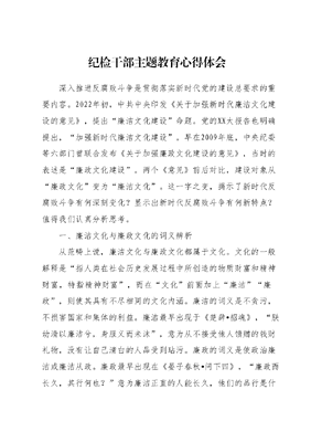 纪检干部主题教育心得体会深入推进反腐败斗争是贯彻落实新时代党的建设总要求的重要内容。2022年初,中共中央印发《关于加强新时代廉洁文化建设的意见》,提出廉洁文化建设命题。党的XX大报告也明确提出,加强新时代廉洁文化建设。早在2009年底,中央纪委等六部门曾联合发布《关于加强廉政文化建设的意见》,当时的表述是廉政文化建设。两个《意见》前后对比,建设对象从廉政文化变为廉洁文化。这一字之变,揭示了新时代反腐败斗争有何深刻变化?显示出新时代反腐败斗争有何新特点?值得我们认真分析思考。一、廉洁文化与廉政文化的词义辨析从范畴上说,廉洁文化与廉政文化都属于文化。文化的一般解释是指人类在社会历史发展过程中所创造的物质财富和精神财富,特指精神财富,而在文化前面加上廉洁廉政,则使其具有不尽相同的文化内涵。廉洁的词义是不贪污,不损害国家和集体的利益。廉洁最早出现于《楚辞招魂》,朕•幼清以廉洁兮,身服义而未沫,意为从不接受他人馈赠的钱财礼物,没有让自己清白的人品受到玷污。廉政的词义是使政治廉洁或廉洁从政。廉政最早出现在《晏子春秋问下四》,廉政而•长久,其行何也?意为廉洁正直的人能长久,他们的品行是什么样的呢?这里的政通正,后来更多是指政治。由此可见,廉洁文化与廉政文化的意义有相通之处,更有不同之处相通之处主要是,都属于文化,强调廉洁,都是中华民族优秀传统文化的重要组成部分。不同之处在于,廉洁文化主要内涵是在整个社会提倡廉洁自律,秉公办事,不徇私情,不谋私利,清白做人。廉政文化主要内涵是从政的社会文化氛围以及从政人员的职业道德和社会公德。从逻辑来说,它们之间是包含关系,即廉洁文化包含廉政文化。二、从廉政文化到廉洁文化的理论逻辑明确了廉洁文化和廉政文化内涵的异同,我们还需要了解新时代为何要提廉洁文化,弄清楚从廉政到廉洁一字之变的理论逻辑。(一)反腐败斗争的成效不断巩固党的十八大以来,深入贯彻全面从严治党,反腐利剑高悬,显著增强了党的自我净化、自我完善、自我革新、自我提高能力根本扭转了管党治党宽松软状况,反腐败斗争取得压倒性胜利并全面巩固。从党的十八大到十九大的5年间,共查处中管干部440人,厅局级干部8900余人,县处级干部6.3万人,基层党员干部27.8万人。从党的十九大到XX大的5年间,反腐败斗争持续深化,全国共立案306.6万件,处分299.2万人,其中查处中管干部261人。中国共产党是执政党,党风引领民风,只有把党内的廉洁抓好,才能抓好社会的廉洁,也就是说廉政是廉洁的前提。所以说,党的十八大以来反腐败取得的成效,是推进廉洁文化建设的基础和前提。(二)反腐败斗争的制度不断健全反腐败的核心是对权力的制约和监督。党的十八大以来,党中央注重将深化改革和制度创新有机结合,加强对权力运行的制约和监督,建立起完善的反腐败制度体系。2012年,中央政治局以上率下,作出关于改正工作作风、密切联系群众的八项规定,并一以贯之,有效遏止了腐败的蔓延。2015年《中国共产党廉洁自律准则》对党员领导干部提出廉洁从政廉洁用权廉洁修身廉洁齐家的廉洁自律规范。2016年制定的《关于新形势下党内政治生活的若干准则》,单列章节强调保持清正廉洁的政治本色,指出建设廉洁政治,坚决反对腐败,是加强和规范党内政治生活的重要任务。2017年党的十九大将发展积极健康的党内政治文化,营造风清气正的良好政治生态写入党章修正案,同时要求党的各级领导干部必须做到信念坚定、为民服务、勤政务实、敢于担当、清正廉洁,将廉洁纪律列为党的纪律之一。2021年中宣部、中央文明办、中央纪委机关等联合印发《关于进一步加强家庭家教家风建设的实施意见》等持续推进不敢腐、不能腐、不想腐取得更多成果。党内反腐败法规的不断健全完善,既夯实了反腐败斗争的基础,更为廉洁文化建设提供了明确的指引。(三)反腐败斗争的范畴亟需扩展随着反腐败斗争的深入开展,我国设立国家监察委员会和地方各级监察委员会,构建起巡视巡察上下联动格局,以党内监督为主导、各类监督贯通协调的机制,对权力运行形成全方位的制约和监督,形成横向到边、纵向到底的大体系。建立这一体系,是基于我们党是执政党,在抓好党的自身建设的同时,还要治理好国家,因此必须把反腐败斗争从党内扩展到党外,从政府扩展到社会,将所有行使公权力的公职人员都置于监察监督之下,构建系统完备、科学规范、运行高效的权力制约和监督体系,实现党内监督和国家监察全覆盖,使依规治党和依法治国有机统一。同时,我们也要清醒地认识到,动员全社会力量对各行各业开展深入的反腐败斗争,使整个社会形成浓厚的清廉之风还任重道远这是加强新时代廉洁文化建设的逻辑起点。三、从廉政文化到廉洁文化的实践新特点进
