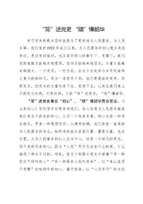简述党史 牍懂韶华学习党史的根本目标就是为了更好地为人民服务、为人民办事。我们党自1921年成立以来,为人民服务的初心就从未改变过、更没有动摇过,也正是在初心的指引下、支撑下,我们党的道路才能越走越宽阔,信仰才能越来越坚定,力量才能越来越强大。一日党员,一世为民。在这个全民参与中华民族伟大复兴的新时代,作为一名党员干部,我们更要读好党史、用好党史,把党史的力量传承下去、发扬下去,让其在我们身上不断发光发热,只有这样,才能简述党史,牍懂韶华。简述党史重在初心,牍懂韶华贵在坚定。什么是初心?党的百年征程告诉我们,全心全意为人民服务就是我们党永不改变的初心。从另一个角度来看,初心也是一种信念抱负,更是一种理想信仰。从建党初期,我们党就一直秉持为人民服务的信念,始终将其放在首要位置、重要位置、突出位置,从为人民服务到以人民为中心,这是一个时代的更迭,但不变的还是初心,因为人民两字无论在什么时候、什么情况下都永不过时。对此,党员干部要从党史中读懂有一种坚定不移叫初心有一种服务人民叫使命,以泰山压顶不弯腰的韧劲守好初心、履行使命,以心灵手巧的方式用好人民两字千钧之力,只有如此,我们才不会走偏、走失、走丢。简述党史重在精神,牍懂韶华贵在领悟。传承什么样的精神?这就需要我们逆向思考,首先要想想是什么样的精神,让我们党在种种困难面前都能笃志前行、屹立不倒,在种种挑战前面都能勇往直前、迎刃而解。从党的百年发展历程上不难看出,我们党是一个有理想信念、有担当作为、有磅礴力量的党,是一个敢想敢干、敢拼敢闯、敢作敢为的党,是一个能吃苦、能奉献、能战斗的党,也正是有了这些精神,才让我们党经久不衰、屹立不倒。因此,党员干部要以将心比心设身处地的角度去感悟中国共产党的伟大之处,在百年党史的字里行间中寻找到百年大党的精神之源,真正达到追本溯源,固本培元之效,从而让我们在干事创业上有目标、有力量、有信心。简述党史重在力量,牍懂韶华贵在践行。何为力量,对于共产党人来说,力量是能干事、会干事、干成事,力量更是信念坚、本领高、作风硬。因为,只有信念坚定才不会偏离宗旨、本领高强才不会无所作为、作风务实才不会违背民心。孟子曰:得民心者,得天下。这是千古不变的铁律,为官者为人民好,就是为党为国好。作为一名党员干部,文可居文库——海量学习资料,手机电脑均可下载www.wenkeju.com要深知学史的目的就是为了更好地力行,力行也就是学思用贯穿,知信行合一。因此,我们要永不停歇地汲取好党史之力,准确无误地用好党史之力,使自己在变得既高又强的同时,又能丝毫不差的服务人民,真正做到在践行党的宗旨上游刃有余有的放矢,在为实现中华民族伟大复兴的进程中贡献韶华力量。文可居文库——海量学习资料,手机电脑均可下载www.wenkeju.com