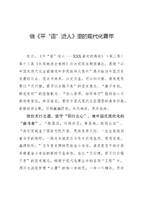 做《平语近人》里的现代化青年近日,《平语近人——XXX喜欢的典故》(第三季)第十二集《长风破浪会有时》在央视综合频道播出,围绕以中国式现代化全面推进中华民族伟大复兴展开叙述中国历史发展的过去、现在与未来。以史为鉴,可以知兴替。青年党员要以天行健,君子以自强不息的坚定意志、靡不有初,鲜克有终的坚强毅力、初心易得,始终难守强劲信心不断淬炼党性,踔厉奋发,塑造中国式现代化蓝图里的青年形象,高挂前进云帆,行稳巍巍巨轮,长风破浪,共济沧海。效仿天行之道,坚守笃行之心,做中国式现代化的奋斗者。路虽远,行则将至;事虽难,做则必成。我们党诞生于国家内忧外患、民族危难之时,一出生就铭刻着斗争的烙印,一路走来就是在斗争中求得生存、获得发展、赢得胜利。百年党史照映民族奋斗本性,基层党员干部亦是承载着奋斗本性的新时代生命体,当以天行健,君子以自强不息的坚定意志,锻炼于现代化事业中的各项工程中,用汗水浇筑梦想大厦的每一块砖瓦,一步一个脚印,用实绩勾勒奋斗者的生动形象。坚定笃行之心,当以史为鉴,常学常新,时常回顾厚重沧桑的历史,从中华文化的博大精深、中华民族的筚路蓝缕中,感悟笃行的不变之理,从而强化学习意识、奋斗意志,驰而不息争学习,不折不扣干实绩,把学习贯穿于干事创业的方方面面,多使劲,勤建功,做中国式现代化发展新征程的实干家。唤醒红色基因,坚守为民之心,做中国式现代化的不倒翁。大木百寻,根积深也;沧海万仞,众流成也。实现中国式现代化的奋斗历程是一个充满着变化与转机的过程,既有一些顽固存在的老事物,也有不断涌现的新面孔,更有潜藏在每一段路程里的风险挑战。要坚定不移越过征程的万水千山、克服千难万险,始终如一的迈向最初的目标,青年党员就要继承中国共产党始终如一的为民信仰,牢固树立为民的初心使命,以民为要,排解万难。重温党史中革命先烈迈出的每一步,常态化开展党史学习,激发和平年代青年党员身体里潜藏的红色基因,在新征程的接力棒里注入为民的红色元素,指引中国式现代化蓝图里的奔跑者始终朝着正确的方向前进,时刻拒绝身边的诱惑、保持清醒的认知、加满前进的动力,做中国式现代化里永远高举全心全意为民服务旗帜的不倒翁。文可居文库——海量学习资料,手机电脑均可下载www.wenkeju.com常怀忧患意识,坚守强国之心,做中国式现代化的多面体。古语有云:生于忧患,死于安乐。当今世界正经历百年未有之大变局,中国式现代化前进道路亦然会遇到难以预料的风险与挑战,青年党员只有居安思危,牢固树立忧患意识,多向转化角色,才能长风破会有时,以强劲的信心抓住机遇、应对挑战,在危机中育新机,于变局中开新局。生逢伟大时代,青年党员肩负历史重任,大有可为,要自觉做XXX新时代中国特色社会主义思想的坚定信仰者,以党的先进理论铸牢思想之魂;要自觉做党史的研究者,耐下心来补足精神之钙,保持对腐蚀围猎的警觉,以党的优良传统持续提升自我革新之能。用清醒、敏捷、明辨的青年面貌灵活应对中国式现代化前进过程中的一切挑战,未雨绸缪,逐步克服现代化发展里的短板与不足,做中国式现代化发展的坚实力量。文可居文库——海量学习资料,手机电脑均可下载www.wenkeju.com