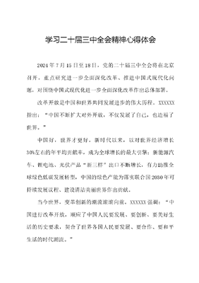 学习二十届三中全会精神心得体会2024年7月15日至18日,党的二十届三中全会将在北京召开,重点研究进一步全面深化改革、推进中国式现代化问题,对围绕中国式现代化进一步全面深化改革作出总体部署。改革开放是中国和世界共同发展进步的伟大历程。XXXXXX指出:中国不断扩大对外开放,不仅发展了自己,也造福了世界。中国好,世界才更好。新时代以来,以对世界经济增长30%左右的年平均贡献率,成为全球增长的最大引擎;新能源汽车、锂电池、光伏产品新三样出口不断增长,有力助推全球绿色低碳发展转型,中国的绿色产能为落实联合国2030年可持续发展议程、建设清洁美丽世界作出贡献。当今世界,变革创新的潮流滚滚向前。XXXXXX强调:中国进行改革开放,顺应了中国人民要发展、要创新、要美好生活的历史要求,契合了世界各国人民要发展、要合作、要和平生活的时代潮流。在历史前进的逻辑中前进、在时代发展的潮流中发展,中国坚定不移推进改革开放,不断以自身的新发展为世界提供新机遇、作出新贡献。今天,中国式现代化的理论和实践,打破了现代化就是西方化的迷思,开辟的是人类迈向现代化的新道路;来自中国前无古人的创举,破解了人类社会发展的诸多难题,开创的是人类文明新形态。光明之路正义之路,中国坚定不移推进改革开放,为人类对更好社会制度的探索提供了中国方案。从共建一带一路倡议,到全球发展倡议、全球安全倡议、全球