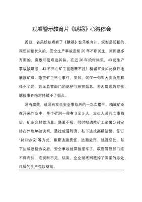 观看警示教育片《瞒祸》心得体会近日,省局组织观看了《瞒祸》警示教育片。观影是短暂的,深思却是长久的,安全生产事故连续20年不断发生,原因是多方面的,腐败却是难逃其咎。在近20年的时间里,40起生产事故被瞒报,43名死亡矿工被隐匿不报!精诚矿业如此疯狂地瞒报矿难、隐匿矿工死亡事件,显然,仅仅一句胆大妄为是解释不了的,若无监管部门的庇护与纵容姑息,若无腐败的存在,瞒报事件绝对持续不了很久。没有腐败,就没有发生安全事故后的一次次摆平。精诚矿业在开采作业中,单个矿洞一般有3至5人,发生人员死亡事故后,矿企会封锁消息、隐匿不报,同时把遇难矿工家属分别安排在外地单独谈判,通过威逼利诱、私下达成高额赔偿、签订封口协议等方式,蓄意逃避责任、逃避处罚、逃避惩处。私下达成赔偿协议后,安全事故就算被摆平了,政府管理部门或不得而知,或视而不见,结果,企业彻底回避掉了国家的惩处,违规的生产得以继续。没有腐败,就没有层层转包、挂靠资质和管理混乱等诸多问题的存在。企业的管理责任以收取承包人安全抵押金代替,以包代管、只包不管。承包人生产组织技术能力不足,人员流动性大,没有开展全面的安全教育培训,不遵守安全要求和设计方案进行开采,一系列违规违法的现象,由于腐败分子的保护,都被忽略了。没有腐败,就没有精诚矿业黑社会组织的存在。精诚矿业承包人金富军,通过承包矿山交易、强迫交易、开设赌场等手段攫取钱财,形成了以其为首的黑社会性质组织,共涉及故意伤害、敲诈勒索、寻衅滋事、强迫交易、故意毁坏财物、开设赌场、非法存储爆炸物和不报、谎报安全事故8项罪名17起犯罪事实。由于保护伞的存在,政府相关部门的失职失察、姑息放纵,精诚矿业黑社会组织才得以一步步发展壮大,才让贪婪的企业主无视安全生产的法律法规,无视矿工的生命安全,使得一桩桩矿难反复出现,难以杜绝。通过观看《瞒祸》警示教育片,深刻剖析代县精诚矿业瞒报事件背后存在的腐败、责任和作风问题,作为一名分管监狱安全生产的领导,在今后的生活工作中,坚决做到;从个人角度,要做到严于律己、廉洁自律,筑牢拒腐防线。一要深刻汲取案例警示教训,时刻保持政治清醒,始终保持高度警惕,常怀敬畏之心,防止围猎腐蚀,不碰红线底线。二要严格要求自己,不断增强自律意识和廉洁意识,提高拒腐防变的能力,在本职岗位上恪尽职守,严于律己,廉洁自律。三要以案为鉴,警钟长鸣,筑牢信念之基,坚持防微杜渐,管住小事小节,做到自重、自省、自警、自励。从工作角度,要做到严负其责、严管所辖,切实推动工作开展。一要提高政治站位,凝聚思想共识,带着使命、带着责任、带着担当,抓好自己分管的安全生产工作,守好安全生产的防线,确保隐患排查整治责任落到实处,切实维护国家和人民群众生命财产安全和社会大局稳定,以曲监一域之稳定维护全省大局之稳定;二要强化安全教育,提高防范意识,严格按照省局的安排部署,认真组织专题学习和教育活动,提升安全生产意识,加大安全操作技能培训,提升管理人员的责任意识和履职能力,组织实战型应急演练,提高人员逃生自救能力,确保全体民警职工的生命安全;三要深入排查整治,共筑安全防线,全面开展安全隐患大排查、大整治,加大隐患排查整治力度,建立整改清单,认真彻查改正,全面拧紧责任链条,切实推动安全生产各项措施落实到地,严防安全事故发生。腐败让监管失效,腐败让利益带血,腐败让江山腐蚀。山西代县瞒报矿难深深警示我们每一个党员领导干部,瞒报背后的权钱交易、利益输送、失职渎职等腐败问题及保护伞,对代县煤矿安全事故的发生,难逃其咎。