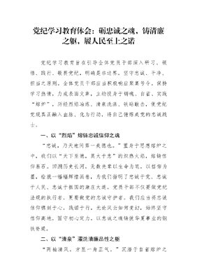 党纪学习教育体会:砺忠诚之魂,铸清廉之躯,履人民至上之诺党纪学习教育旨在引导全体党员干部深入研习、领悟、践行、敬畏党纪,明确是非边界,坚守忠诚、干净、担当之原则。全体党员干部应当积极响应聚集号令,保持学习热情,力戒表面文章,主动投身于铸魂、自省、实践熔炉,历经烈焰冶炼、清泉洗涤、铁砧敲击,使党纪党规真正融入血脉、化为行动,将自己锤炼成党的忠诚战士。一、以烈焰熔铸忠诚信仰之魂忠诚,乃天地间第一美德也。置身于思想熔炉之中,我们以天下至德,莫大于忠的炽热火焰,熔铸信仰基石。回溯历史长河,无数先辈以生命为笔,以信仰为墨,绘就一幅幅辉煌画卷,为我们指明了忠诚于党、忠诚于人民、忠诚于祖国的康庄大道。党员干部不仅要做党纪法规的执行者,更要做党的忠诚守护者。我们应当将忠诚信仰镌刻于心,践诺于行,无论风云如何变幻,始终坚守信仰高地,固守初心定力,以忠诚之魂铸就华夏事业的钢铁脊梁。二、以清泉濯洗清廉品性之躯两袖清风,方显一身正气。沉潜于自省熔炉之内,我们以两袖清风,一身正气的清冽泉水,淬炼品性本质。全体党员干部应自觉打上清正廉洁的鲜明烙印,具备打铁必须自身硬的底气与胆识,面对复杂环境形势,时刻保持警醒,严于律己,恪守党纪国法,对特权思想零容忍,对私心杂念说再见,对任何形式的负面现象坚决说不。砥砺清廉品性之德,党员干部应当如工匠打造绝世宝剑般,不断砥砺意志、强健筋骨、修炼定力,始终以更高标准、更严纪律要求自己,接受灵魂深处的彻底洗礼,以实际行动弘扬清风正气,铸造党员干部的百炼成钢之躯。三、以铁砧锤炼人民至上之情治国有常,而利民为本。投身于实践熔炉之中,我们应像铁砧一样,要承受得住大小锤的千锤百炼,在千百次的锤击中,反复提纯为民服务的情怀。党员干部的核心使命,在于守护人民群众的根本利益。我们应始终铭记:民心所向,即是最大的政治;人民,乃党执政的最大底气。在工作中,我们既要雷霆出击,严惩群众反映强烈、侵犯群众利益的恶劣行径,又要深入基层、贴近民心,倾听民声、感知民情,将群众的痛点难点转化为服务群众的着力点,以扎实有效的行动回应人民期盼。我们要不断锤炼铁砧意志,始终坚守人民立场,将人民是否拥护、是否赞同、是否满意、是否答应作为衡量一切工作成效的根本标尺,走好新时代党的群众路线,切实践行人民至上宗旨,抗住群众的锤击敲打,不断提升人民群众的获得感、幸福感、安全感。党纪学习教育,是一次触及灵魂的思想洗礼,一场严苛自律的品性锤炼,一段生动鲜活的人民情怀实践。我们应以此为契机,不断提升党性修养,坚定信仰信念,磨砺廉洁品质,矢志践行为民宗旨,以实际行动展现忠诚、干净、担当的新时代党员风貌,为实现中华民族伟大复兴的中国梦注入磅礴力量。