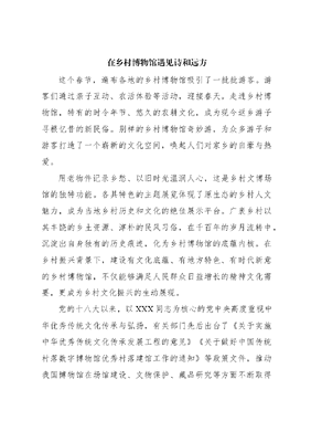 在乡村博物馆遇见诗和远方这个春节,遍布各地的乡村博物馆吸引了一批批游客。游客们通过亲子互动、农活体验等活动,迎接春天。走进乡村博物馆,特有的时令年节、悠久的农耕文化,成为现今返乡游子寻根忆昔的新民俗。别样的乡村博物馆奇妙游,为众多游子和游客打造了一个崭新的文化空间,唤起人们对家乡的自豪与热爱。用老物件记录乡愁、以旧时光温润人心,这是乡村文博场馆的独特功能。各具特色的主题展览体现了原生态的乡村人文魅力,成为当地乡村历史和文化的绝佳展示平台。广袤乡村以其丰饶的乡土资源、淳朴的民风习俗,在千百年的岁月流转中,沉淀出自身独有的历史痕迹,化为乡村博物馆的底蕴内核。在乡村振兴背景下,建设有文化底蕴、有地方特色、有时代新意的乡村博物馆,不仅能够满足人民群众日益增长的精神文化需要,更成为乡村文化振兴的生动展现。党的十八大以来,以XXX同志为核心的党中央高度重视中华优秀传统文化传承与弘扬,有关部门先后出台了《关于实施中华优秀传统文化传承发展工程的意见》《关于做好中国传统村落数字博物馆优秀村落建馆工作的通知》等政策文件,推动我国博物馆在场馆建设、文物保护、藏品研究等方面不断取得新进展。2022年,《关于推动文化产业赋能乡村振兴的意见》强调推动更多美术元素、艺术元素应用到乡村规划建设,鼓励兴办特色书店、剧场、博物馆、美术馆、图书馆、文创馆,为乡村博物馆的未来发展指明方向。近年来,全国各地纷纷行动,充分发掘、保护和利用乡村文化资源,乡村博物馆建设亮点纷呈、成效显著。放眼全国,乡村博物馆切切实实为广大农村群众带来了文化陶冶和精神滋养。未来,乡村博物馆建设要在规划设计、运营管理、产业联动等方面持续发力。一是立足乡土,深挖特色。科学谋划乡村博物馆建设的长远规划和定位设计,将乡村博物馆建设与乡村规划相衔接,与地域环境相融合,与文化需求相匹配。深入挖掘当地历史文化、风俗习惯、传统技艺以及村史逸事等,做到一馆一策一村一品,真正打造出土得有文化底蕴、土得有地方特色、土得有时代新意的乡村博物馆特色。二是活化展陈,丰富体验。乡村博物馆要活得长久、精彩,日常运营管理是关键。应在充分考虑受众需求基础上,针对性推出相应服务举措;创新展陈手段,提高展陈水平,把文化内容、文化符号、文化故事融入展陈设计。三是多元协同,文旅融合。乡村博物馆既是凝聚乡情民心的家园,也是带动产业发展的平台。要坚持政府主导、社会参与、文可居文库——海量学习资料,手机电脑均可下载www.wenkeju.com文旅融合、共建共享,积极引入村民、乡贤等参与场馆设计建设、工艺创作、讲解导览、志愿服务等,增加就业岗位,增强村民的积极性和认同感。注重跨界融合,引入相关领域企业、团队打造文旅品牌,探索文商体旅深度融合新链条,带动乡村旅游发展,使乡村博物馆真正成为乡村发展的聚宝盆,实现乡村博物馆社会效益、文化效益和经济效益的共赢,以乡村博物馆的蓬勃发展为乡村振兴注入不竭动能。文可居文库——海量学习资料,手机电脑均可下载www.wenkeju.com