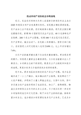 推动乡村产业新业态不断涌现近日,农业农村部相关负责人在国新办新闻发布会上表示2023年我国乡村产业发展势头良好,农民就业增收渠道拓宽。农产品加工业平稳发展,农村电商势头强劲,现代农业园区建设提档升级,新建50个国家现代农业产业园、40个优势特色产业集群、200个农业产业强镇,创建100个农业现代化示范区。在产业带动、就业拉动下,农民收入保持增长,据有关部门统计,农村居民人均可支配收入达到21691元,比上年实际增长7.6%。乡村产业的高质量发展不仅表现在量的增加,更表现在质的提升,特别是大量新业态蓬勃涌现,为乡村全面振兴注入了新活力。乡村新业态的不断涌现,既是农业产业链延伸和提升的表现,更是乡村多元价值得到充分发挥的结果。近年来,很多地区依托特定的农产品生产过程,逐步在县域形成了一二三产融合、城乡融合的产业格局,有效带动了广大农户增收,并吸纳了大量人群就业创业。以茶叶为例,茶叶多元复合的产业链条吸纳了包括茶农、加工厂、收购商贩、物流企业和销售企业在内的众多从业者。不少地区还进一步发挥乡村独特的生态和文化优势,赋予乡村产业新的内涵,持续丰富乡村业态。充分调动乡村资源打造多元产业体系,已成为乡村产业创新发展的重要趋势。数字技术与乡村产业链的深度融合推动乡村新业态繁荣。据统计,2023年全国农村网络零售额达2.49万亿元。数字经济下沉乡村,带来乡村产业链的重组和升级,创造了新的就业和创业机会,已经成为带动乡村发展的新力量。数字经济在既有产业链的基础上做加法,衍生了新产业链环节。发展农产品电商,需要对农产品进行电商化改造,离不开众多新型市场主体的参与,进而催生大量电商企业、MCN公司(从事短视频创作与营销的公司)、供应链企业、包装和物流企业在县域兴起。同时,农村电商的兴起,也是数字技术在既有产业链的基础上做乘法的过程。农产品电商改变了农产品的销售模式,重塑了农产品生产经营方式,也进一步提升了农产品的市场价值。乡村新业态繁荣是城乡要素深度融合的结果。2012年至2022年底,全国返乡入乡创业人员数量累计达1220万人。人才回流尤其是高素质人才进入乡村,在以新技术、新理念激活乡村产业发展动能方面起到了重要的积极作用。产业的发展也促进了县城基础设施建设和公共服务水平提升,进一步提高了县城的吸引力和承载能力,有效支撑了以县城为载体的城镇化。乡村新业态繁荣,推动县域城乡关系新形态加速形成。文可居文库——海量学习资料,手机电脑均可下载www.wenkeju.com当前,乡村产业发展面临诸多机遇,乡村多元价值还有更大的开发空间。人民对高品质生活的期盼日益强烈,消费需求日益多样化、个性化,这为产业不断细分、产品不断创新、产业链不断延长提供了可能。此外,新一轮科技革命的发展,也为乡村产业高质量发展提供了重要契机,数字农业和数字乡村将成为未来乡村创业创新的重要方向。我们也要清醒地看到,乡村产业在发展中还面临一些要素的限制和阻碍,需进一步加大人才、土地和资金等要素的供给力度,持续深化土地制度改革,优化产业发展环境,加强人才培养和引进,创新投融资机制等,抢抓发展机遇,推动乡村产业新业态不断涌现。文可居文库——海量学习资料,手机电脑均可下载www.wenkeju.com
