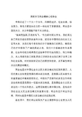贯彻学习两会精神心得体会中国走过了一个又一个五年,而国民经济、社会发展、综合国力、等各方面犹如走台阶一样也有了显著提高。两会是中国的关口,关注中国就不能不关注两会。"海阔凭鱼跃,天高任鸟飞。"作为新时期大学生,我们深为自己所处的盛世感到自豪和兴奋,建设有中国特色的社会主义宏伟大业,为我们每个青年知识分子施展自己的抱负、展现自己的才华提供了广阔的用武之地,我们十分感谢这些年来国家、社会和母校为培养我们这些学子所付出的财力、物力和精力,本人将竭尽自己所能,把自己学到的专业知识用于日常工作和社会实践,时时刻刻牢记自己的职责和使命,决不辜负学校师长的期望和嘱托。两会也是对中国社会主义民主政治模式的实践和展示。人民代表大会制度是我国的根本政治制度,是我国人民当家作主的重要途径和最高实现形式。中国共产党领导的多党合作和政治协商制度是我国的一项基本政治制度,是我国社会主义民主政治的一个特点和优点。这两项制度扎根中国大地,是构成中国社会主义民主政治模式的重要内容。两会的召开和运作过程,同时也就是中国民主政治模式的实践过程。在生活中,我们将以实现共产主义理想和全心全意为人民服务作为坚定信念,时刻鞭策、鼓励自己,使自己对社会活动始终保持信心和干劲,我们不会灰心或气馁,而是充分利用业余时间刻苦钻研、加强学习、注意积累经验、虚心请教、认真揣摩。凡事预则立,因此,能否实现自己的理想,关键就在于我们个人是否能够始终如一地坚持信念,是否能够满怀兢兢业业的态度。文可居文库——海量学习资料,手机电脑均可下载www.wenkeju.com