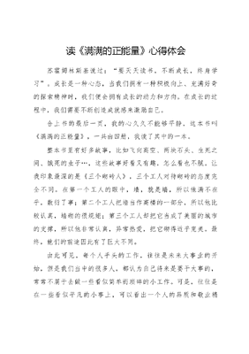 读《满满的正能量》心得体会苏霍姆林斯基说过:要天天读书,不断成长,终身学习。成长是一种心态,当我们拥有一种积极向上、充满好奇的探索精神时,我们便会拥有成长的动力和方向。在成长的过程中,我们需要不断创造成就感来激励自己。合上书的最后一页,我的心久久不能够平静,这本书叫《满满的正能量》,一共由四册,我读了其中的一本。整本书里有好多故事,比如飞向高空、两块石头、生死之间、饿死的虫子…,这些故事好看又有趣,怎么看也不腻。让我印象最深的是《三个砌砖人》,三个工人对待砌砖的态度完全不同。在第一个工人的眼中,墙,就是墙,所以他满不在乎,敷衍了事;第二个工人把墙当作高楼的一部分,所以他比较认真,墙砌的很规矩;第三个工人却把它当成了美丽的城市的支撑,所以他非常认真,异常热爱,把它砌得近乎完美。最终,他们的前途因此有了巨大不同。由此可见,每个人手头的工作,往往是未来大事业的开始,但是我们当中的很多人,都认为自己将来是要干大事的,常常不屑于去做一些看似简单而琐碎的小工作。可是,往往是在一些看似平凡的小事上,可以看出一个人的品质和敬业精神。因为一个人对待小事的态度是否认真,决定了他是否具备干大事的潜能。一屋不扫何以扫天下,试想一个连小事都做不好的人,又怎能做得了大事?又有谁敢把大事交给他去做呢?一名党员就是一面旗帜,一面旗帜凝聚一股力量。结合我们现在的工作,作为党员干部,不能好高骛远,要脚踏实地,从小事做起,勿以善小而不为,勿以恶小而为之。读完这本书,我也深刻的认识到,要想成就大事,做任何事都要从小事做起,必须认真对待手头的一些小工作,不能忽略任何一个细节,将它们看成是大事业的支撑部分,以最大的热情,尽量完美地把它们做好,只有这样才能在未来的道路上走得更加稳健,更加顺利。一是要有一颗上进的心,抱着学习的态度,虚心向同事请教,搞好人际关系,在愉快的环境中工作。不能虚心学习,大多是因为放不下自己的面子,或和同事的关系不够密切,再或就是对工作中的新内容不感兴趣,导致自己学的很被动。能虚心接受他人的意见,虚心去求教他人才能集思广益,比自己独自摸索要强百倍。重读程门立雪的故事时,从中得到对工作的新的感悟。北宋名家杨时在40岁时与好友游酢一起去向程颐求教,凑文可居文库——海量学习资料,手机电脑均可下载www.wenkeju.com巧赶上程颐在屋中打盹儿。杨时便劝告心急的游酢不要惊醒老师,于是两人静立门口,等待老师醒来。谁知一会儿,下起了鹅毛大雪。程颐一觉醒来,发现门外的两个雪人。伟人尚可如此虚心求教,律己敬人,何况我们。二是要独当一面,要对工作认真负责,每天把自己份内的事情做好。首先我们要端正态度,转变自己的思想,从小处着手。其次,要想做好本职工作,不仅要表态度、下决心,更要不断加强自身的学习,不断成长,与时俱进。最后,要想做好自己的本职工作,必须要有严格的纪律观念做保证。古时候,滕子京被调到巴陵郡任太守一职,他没有因被降职和工作繁重而丧失志气,反而积极地肩负起了身为太守的责任,才有了巴陵政通人和,百废俱兴的繁华景象。滕子京也因此受到百姓的爱戴。我们也应当如此,不管遇到什么样的工作困难,都应尽职尽责,不推辞,勇于担当。三是读万卷书、行万里路。办好中国的事情,关键在党。这是我们党百年历史得出的一个基本结论。长期以来,我们党把坚持党的领导作为抓好党的事业的根本前提,把加强党的工作作为推动事业的根本保证,使党和国家各项事业始终保持了正确发展方向和强大发展动力,不断从胜利走向胜利。要用党的创新理论武装头脑、指导实践、推动工作上下真功见实文可居文库——海量学习资料,手机电脑均可下载www.wenkeju.com效。我们党之所以能够立于不败之地,一个重要原因是始终坚持马克思主义科学理论的指导地位。我会更加深入总结和运用我们党百年来的宝贵经验,坚定至今理想信念,不忘初心、牢记使命,迎难而上、锐意进取,朝着实现第二个百年奋斗目标、实现中华民族伟大复兴的宏伟目标奋勇前进。文可居文库——海量学习资料,手机电脑均可下载www.wenkeju.com