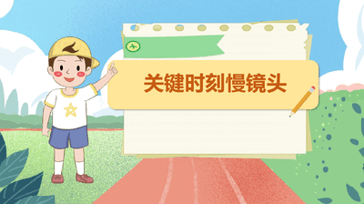 关键时刻慢镜头大壮菲菲小天大壮菲菲小天请问,大壮、菲菲和小天分别在做什么?①看综艺②看球赛③上网课A.①③②B.②①③C.①②③对人物的动作和行为进行描写。动作描写要符合并能表现人物的身份、性格和状态等。动作描写大壮大壮大壮根据提示,详细描写一下事件里的动作。大壮吃西瓜根据提示,详细描写一下事件里的动作。大壮吃西瓜大壮我的吃瓜朋友今天,我最好的朋友大壮参加了吃瓜大赛。比赛开始了,大家都在拼命吃瓜。大壮把西瓜切开,放在桌子上,伸手拿起一块西瓜,一边把嘴拼命张大,一边把西瓜喂到嘴里。他最终以最快的速度获得了第一名。大壮拿着西瓜。大壮右脚踩在凳子上,左脚踮起,身体绷紧前倾,两只手拿着西瓜,瞪着眼睛,竖起耳朵,等待着指令。我的吃瓜朋友今天,我最好的朋友大壮参加了吃瓜大赛。只见大壮右脚踩在凳子上,左脚踮起,身体绷紧前倾,两只手拿着西瓜,瞪着眼睛,竖起耳朵,等待着指令。比赛开始了,大家都在拼命吃瓜。大壮把西瓜切开,放在桌子上,伸手拿起一块西瓜,一边把嘴拼命张大,一边把西瓜喂到嘴里。他最终以最快的速度获得了第一名。我的吃瓜朋友今天,我最好的朋友大壮参加了吃瓜大赛。只见大壮右脚踩在凳子上,左脚踮起,身体绷紧前倾,两只手拿着西瓜,瞪着眼睛,竖起耳朵,等待着指令。比赛开始了,大家都在拼命吃瓜。大壮把西瓜切开,放在桌子上,然后拿起一块西瓜往嘴里喂。一块西瓜吃完了,另一块西瓜又被喂到嘴里。虽然西瓜汁流得到处都是,但是大壮根本就不在乎。最终,大壮以最快的速度获得了第一名。小明饿坏了,看到一桌子好吃的就赶紧冲过去。大壮大壮大壮大壮大壮我的吃瓜朋友大壮大壮大壮大壮大壮高兴地笑跑得快笑跑忽然听见街上咕咚咕咚有人跑,把屋子震得好像摇晃起来,窗户纸哗啦哗啦一直响。大壮大壮大壮大壮大壮呼哧呼哧大壮大壮大壮大壮大壮他鼓起腮帮子呼哧呼哧地咀嚼,眼睛还一直紧紧地盯着周围吃瓜的选手,简直就像一只好胜的大公鸡!一块西瓜吃完了,另一块西瓜又被喂到嘴里。虽然西瓜汁流得到处都是,但是大壮根本就不在乎。最终,大壮以最快的速度获得了第一名。重点写你的动作、小伙伴的动作前后慢动作,身体定格照换动词、修饰词、加手法可以适当增加一些神态、语言、心理描写定义:对人物的动作和行为进行描写。要点:动作描写要符合并能表现人物的身份、性格和状态等。前后慢动作肢体定格照表顺接表转折换动词加修饰词加修辞手法1.拆解动作2.连接动作3.修饰动作本讲总结下一讲再见吧!