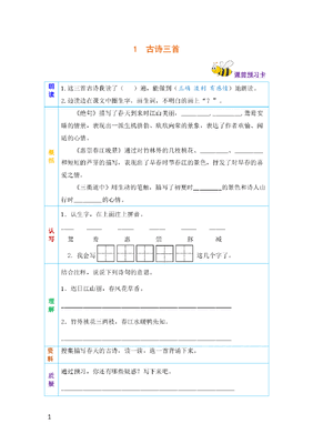 11古诗三首课前预习卡朗读1.这三首古诗我读了()遍,能做到(正确流利有感情)地朗读。2.边读边在课文中圈生字,画生词,不明白的画上?。概括《绝句》描写了春天到来时江山美丽,_________,_________,鸳鸯安睡的情景,表现出一派生机勃勃、欣欣向荣的景象,表达了作者欢愉、闲适的心情。《惠崇春江晚景》通过对竹林外的几枝桃花、_________、_________和短短的芦芽的描写,表现出了早春时节春江的景色,抒发了对早春的喜爱之情。《三衢道中》用生动的笔触,描写了初夏时_________的景色和诗人山行时_________的心情。认写1.认生字,在上面注上拼音。_____________________________鸳鸯惠崇豚减2.我会写这几个字了。理解结合注释,说说下列诗句的意思。1.迟日江山丽,春风花草香。______________________________________________________2.竹外桃花三两枝,春江水暖鸭先知。______________________________________________________资料搜集描写春天的古诗,读一读,选一首背诵下来。质疑通过预习,你还有哪些疑惑?写下来吧。_______________________________________________________2课后默写卡一、生字新词默写。二、直接型默写。(默写《绝句》)________________________________________________________________________________________________________三、理解型默写。(根据意思写诗句)1.燕子衔着湿泥忙筑巢,暖和的沙子上睡着成双成对的鸳鸯。________________________,_______________________。2.山路上苍翠的树荫,与来的时候一样浓密,深林中传来几声黄鹂的欢鸣。________________________,_______________________。完成用时______(分钟)错别字数__________(个)32燕子课前预习卡朗读1.课文共()个自然段,我读了()遍,能做到(正确流利有感情)地朗读。2.边读边在课文中圈生字,画生词,不明白的画上?。概括作者通过对燕子的外形和在春光中__________、__________的燕子的动作的描写,赞美了活泼可爱的小燕子,达了对光彩夺目的春天到来的__________热爱之情。认写1.读词语,不会读的在旁边做上标记。伶俐翼尖聚拢荡漾赶集纤细活泼休憩2.给下列加点的多音字选择正确的读音,画√。闲散.(sànsǎn)木杆.(ɡānɡǎn)3.认生字,在上面注上拼音。__________________________________凑拂掠偶倦闲痕4.我会写这几个字了。理解1.联系上下文,写出下列词语的意思。伶俐:_______________________________________光彩夺目:_______________________________________2.作者描写了小燕子的哪些活动?_____________________________________________________资料搜集有关春天的图片或美文欣赏一下。质疑通过预习,你还有哪些疑惑?写下来吧。_______________________________________________________联系上下文是理解词语的好方法哟!4课后默写卡一、生字新词默写。二、理解型默写。补充词语。__________的羽毛__________的湖面__________的天空__________的图画__________的春天__________的电线三、直接型默写。1.二三月的春日里,轻风微微地____________,____________由天上洒落着,______________的柔柳,红的白的黄的花,青的草,绿的叶,都像________聚拢来,形成了烂漫无比的春天。2.小燕子带了它的______________的尾巴,在阳光满地时,斜飞于______________的天空,叽的一声,已由这里的稻田上,飞到那边的高柳下了。四、运用型默写。春天来了,我家的屋檐下飞来了一对可爱的小燕子。看,小燕子多可爱呀!它们(写一写燕子的外形)__________________________________________________________________。完成用时______(分钟)错别字数__________(个)53荷花课前预习卡朗读1.课文共()个自然