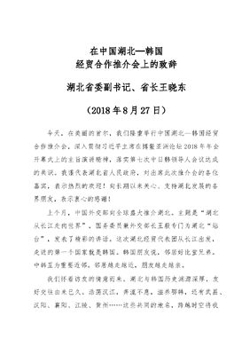 王晓东:在中国湖北─韩国经贸合作推介会上的致辞.docx