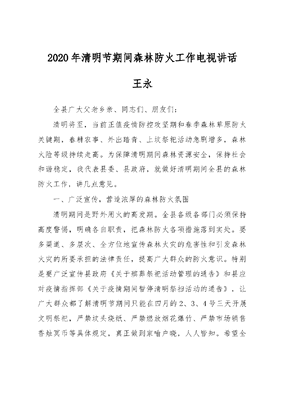 王永:2020年清明节期间森林防火工作电视讲话.docx