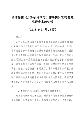 许仲梓在《江苏省地方志工作条例》贯彻实施座谈会上的讲话.docx