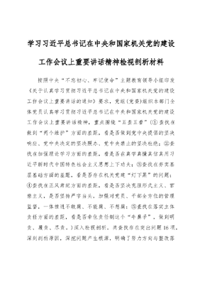 学习在中央和国家机关党的建设工作会议上重要讲话精神检视剖析材料.docx