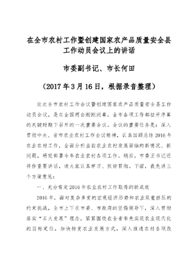 在全市农村工作暨创建国家农产品质量安全县工作动员会议上的讲话.docx