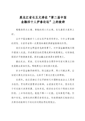 王文涛:在“第二届中国金融四十人伊春论坛”上的致辞.docx