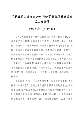 王登喜同志在全市对外开放暨重点项目建设会议上的讲话.doc
