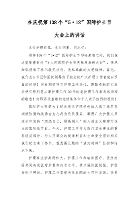 在庆祝第108个512国际护士节大会上的讲话.docx