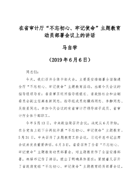 在省审计厅“不忘初心、牢记使命”主题教育动员部署会议上的讲话.docx