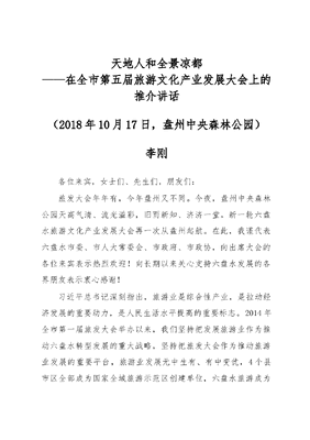 在全市第五届旅游文化产业发展大会上的推介讲话.docx