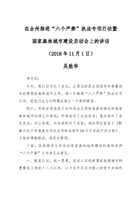 在全州推进“六个严禁”执法专项行动暨国家森林城市建设启动会上的讲话.docx