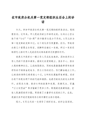 在市政府办机关第一党支部组织生活会上的讲话.docx