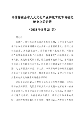 许仲梓在全省人大文化产业和教育改革调研交流会上的讲话.docx