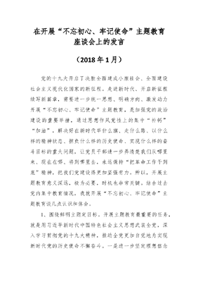 在开展“不忘初心、牢记使命”主题教育座谈会上的发言.doc