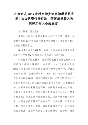 在贵定县2017年社会治安综合治理委员会第4次会议暨依法行政、信访维稳暨人民调解工作大会的发言 .docx