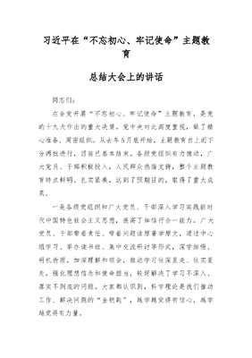 在“不忘初心、牢记使命”主题教育总结大会上的讲话.docx