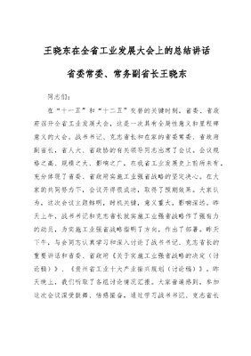 王晓东:在全省工业发展大会上的总结讲话.doc