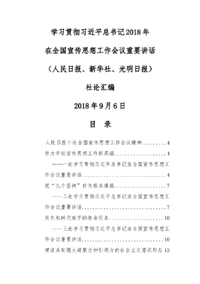 学习贯彻习近平总书记2018年在全国宣传思想工作会议重要讲话(人民日报、新华社、光明日报社论汇编).docx