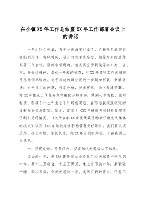 在全镇XX年工作总结暨XX年工作部署会议上的讲话.doc