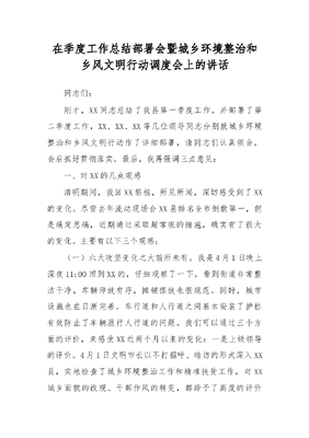 在季度工作总结部署会暨城乡环境整治和乡风文明行动调度会上的讲话.doc
