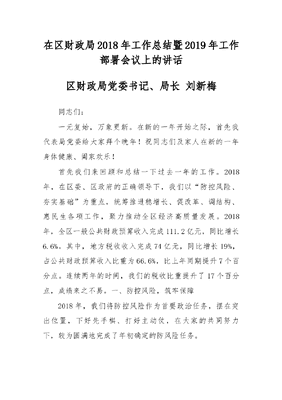 在区财政局2018年工作总结暨2019年工作部署会议上的讲话.docx